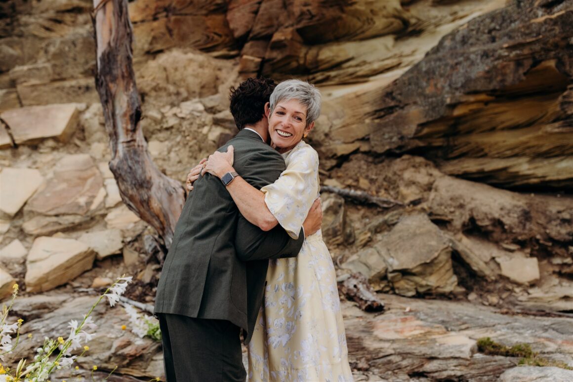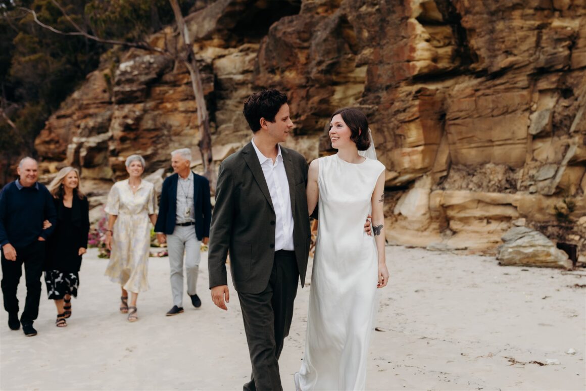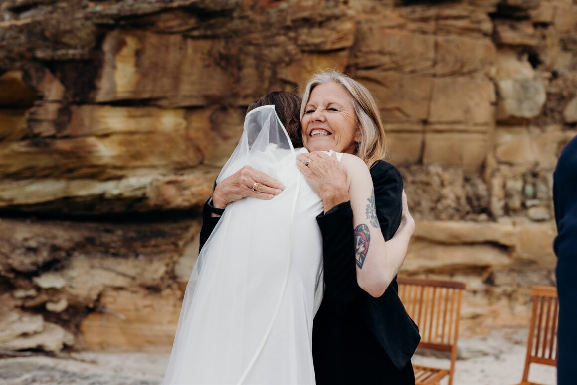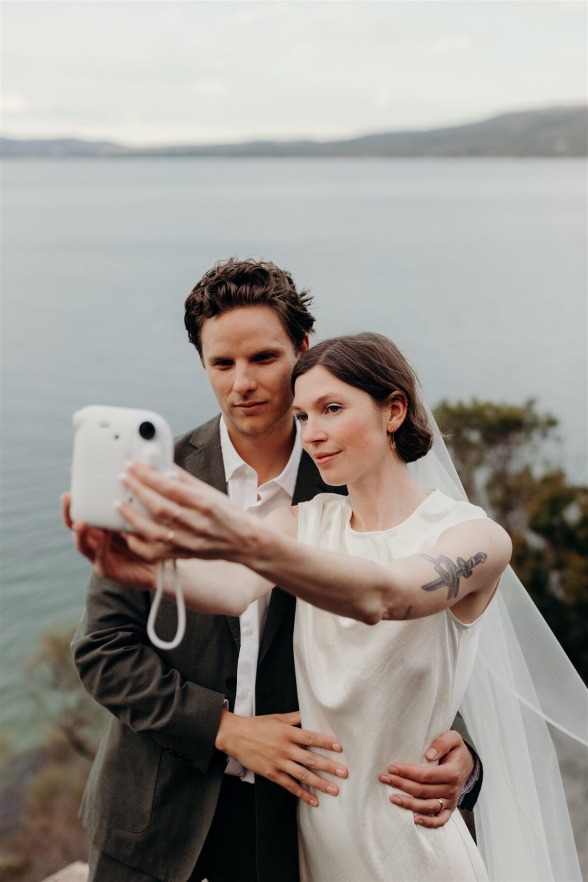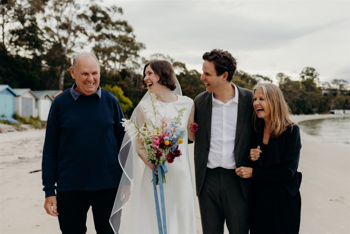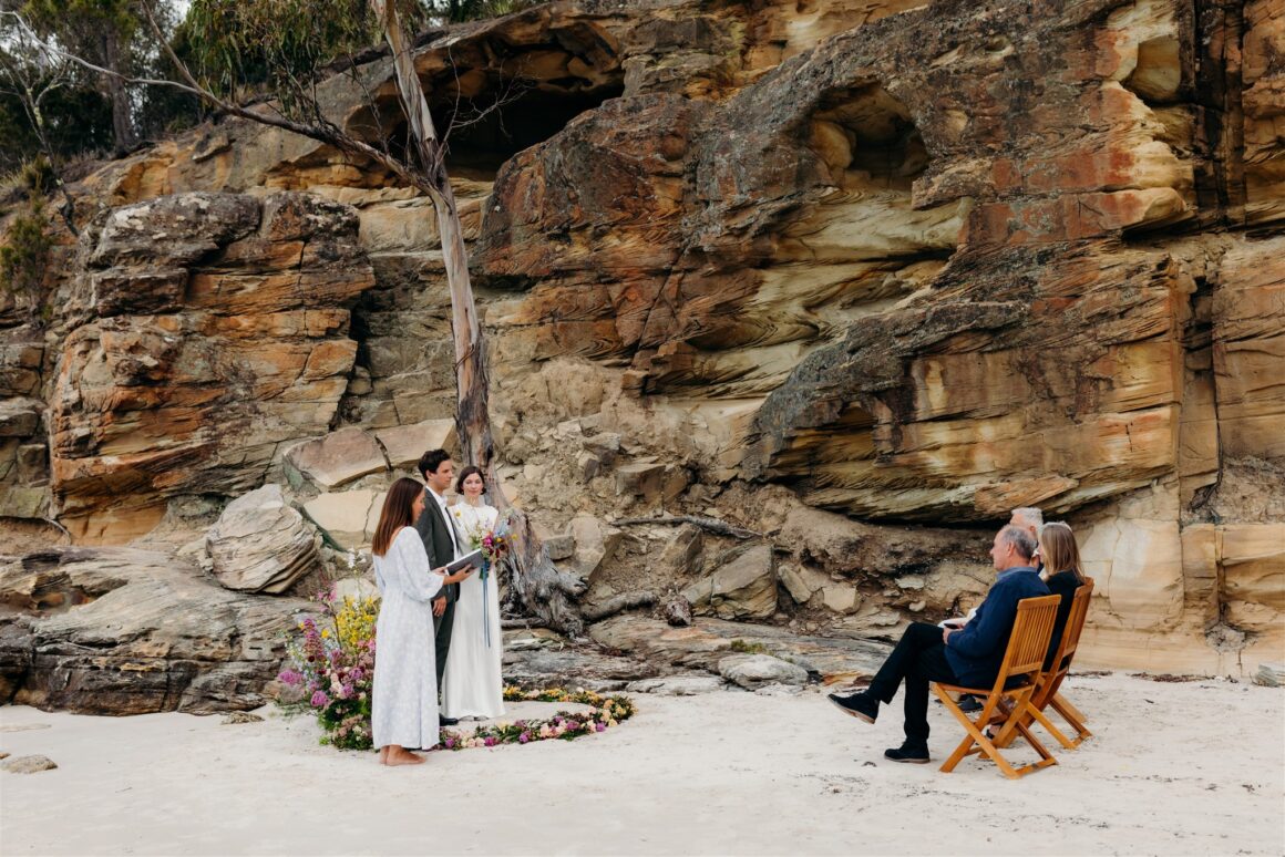 Ils n’ont pas eu besoin de chercher bien loin pour trouver le lieu idéal pour leur fugue intime. Coningham Beach, à Hobart, à seulement quelques centaines de mètres de chez moi, était l'endroit idéal. « C'est tellement magique et cela occupe une place spéciale dans nos cœurs. » Le couple rapporte que le bouche à oreille a été la clé pour trouver leur équipe de rêve, leur célébrant, Merren Wilkinson (Cinta Celebrate Love), étant celui qui a recommandé leur photographe, Jess Oakenfull. « Nous avons adoré l'approche franche de Jess et sa capacité à capturer les instants intermédiaires sans que nous soyons conscients de sa présence. »