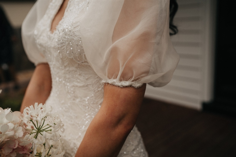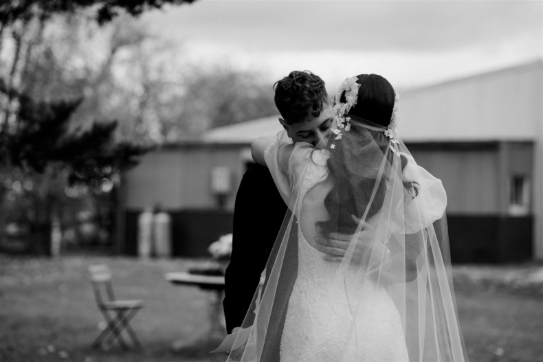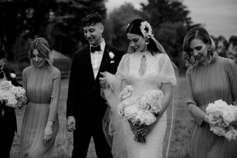 MOMENT MÉMORABLE » La cérémonie. Nous n’avions aucune idée de ce que notre célébrant Zéna Lythgo soulignerait pendant la cérémonie afin que nos réactions soient aussi brutes que les invités et cela nous a aidés à nous sentir plus connectés sur le moment. C’était une montagne russe de rires et de larmes, saupoudrée d’un peu de pluie.
