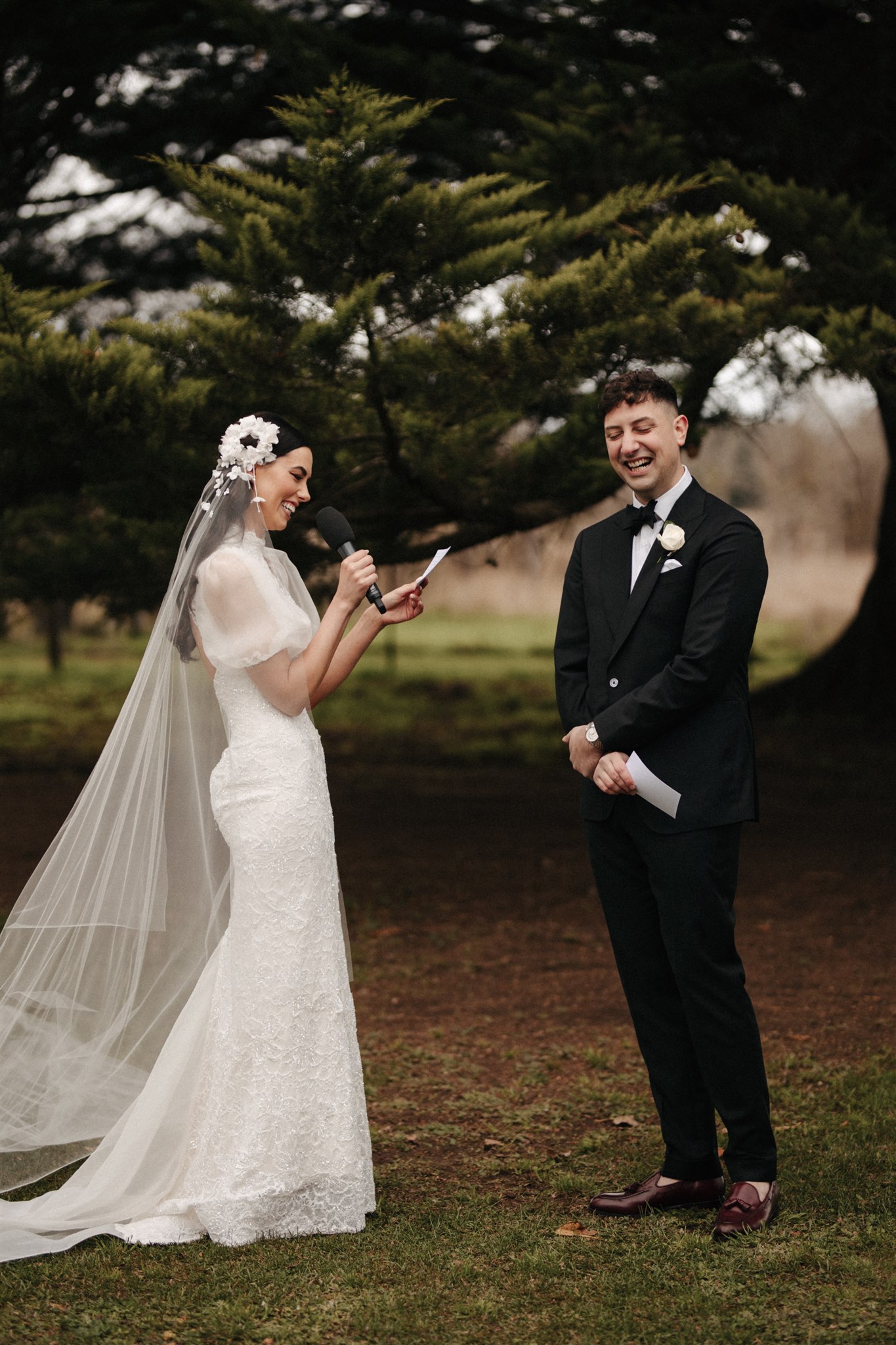 LE LIEU « Nous voulions maximiser le temps de la journée et avoir à la fois la cérémonie et la réception au même endroit. Parc de la Cadelle était le premier que nous avons vu. Nous l’avons adoré dès le début, mais nous avions besoin d’en voir plus pour comparer et être sûrs que c’était le bon choix. Après avoir vu environ 20 sites, rien de comparable, nous l’avons donc verrouillé! Avec le lieu si proche de Kyneton, nous avons pu construire un week-end à partir de la date du mariage et créer des souvenirs supplémentaires. Il y a tellement de choses à explorer dans les Macedon Ranges et nous aimons pouvoir les revoir à l’avenir.