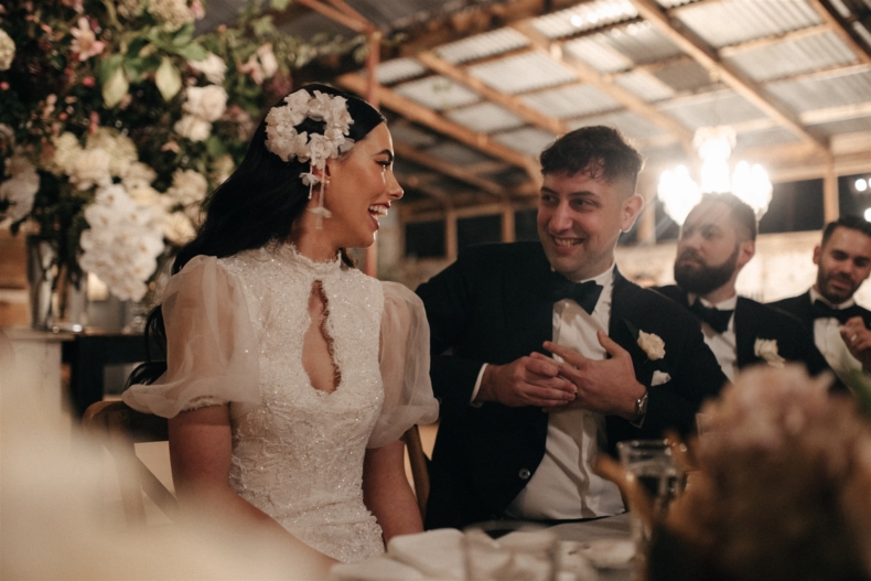 FOURNISSEURS EXCEPTIONNELS « Chaque fournisseur que nous avons eu était exceptionnel ! Pour en souligner quelques-uns, Sarah Godenzi notre photographe est une superstar totale! Elle a fait notre séance photo de fiançailles, donc nous savions déjà qu’elle trouverait un moyen de nous faire bien paraître. Jaaz notre DJ de Société de divertissement de Melbourne était fantastique – il a chronométré notre chanson d’entrée avec la fête de mariage si parfaitement que c’était inoubliable. La piste de danse était pleine d’énergie jusqu’à notre dernière chanson. Nous avons pu prolonger notre temps plus longtemps et tous nos fournisseurs ont été flexibles et sont restés, nous ne pouvions pas en avoir assez !