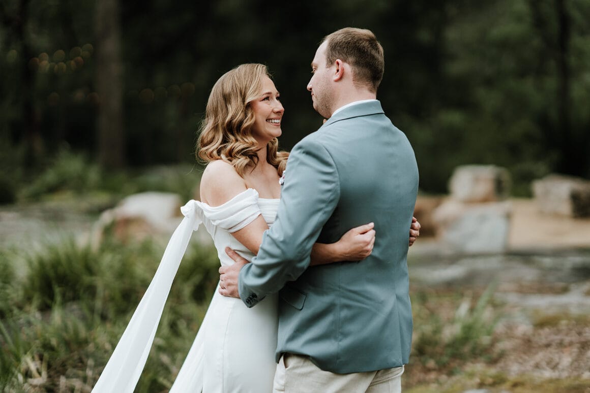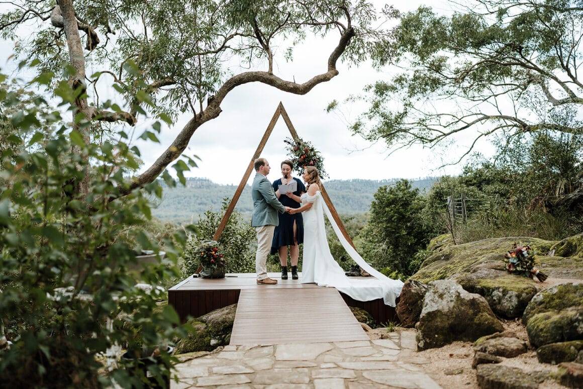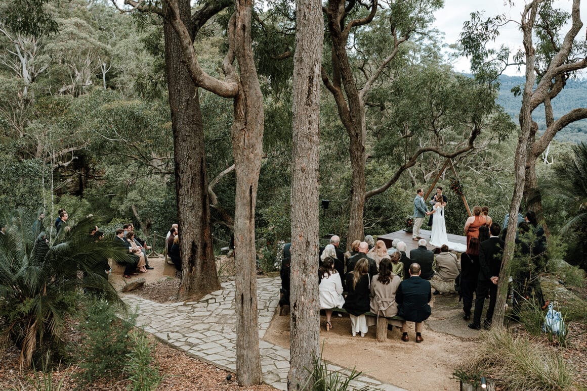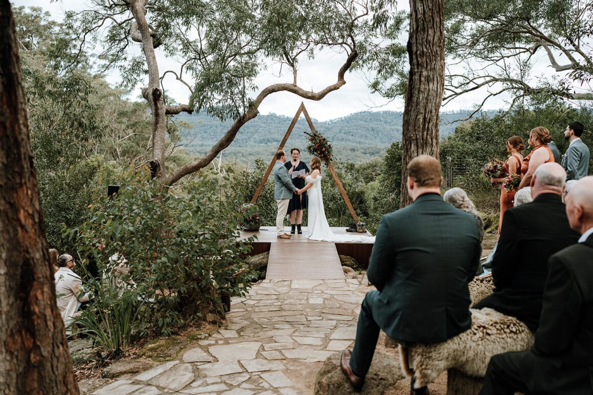 Lorsque Liz et Joel sont entrés dans le parc de Wildwood, ils «se sont instantanément sentis en paix». Avec son charme rustique, sa foresterie verte luxuriante et le ton tranquille de l'eau courante à proximité, c'était l'endroit idéal pour effectuer leur mariage de la vallée du Kangourou. De plus, lorsque Wildwood a confirmé que les chats du couple étaient les bienvenus, l'accord a été scellé!
