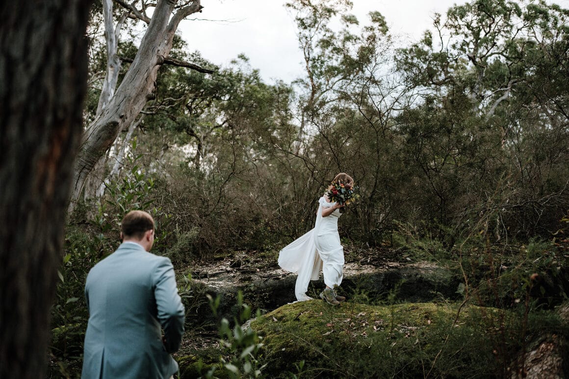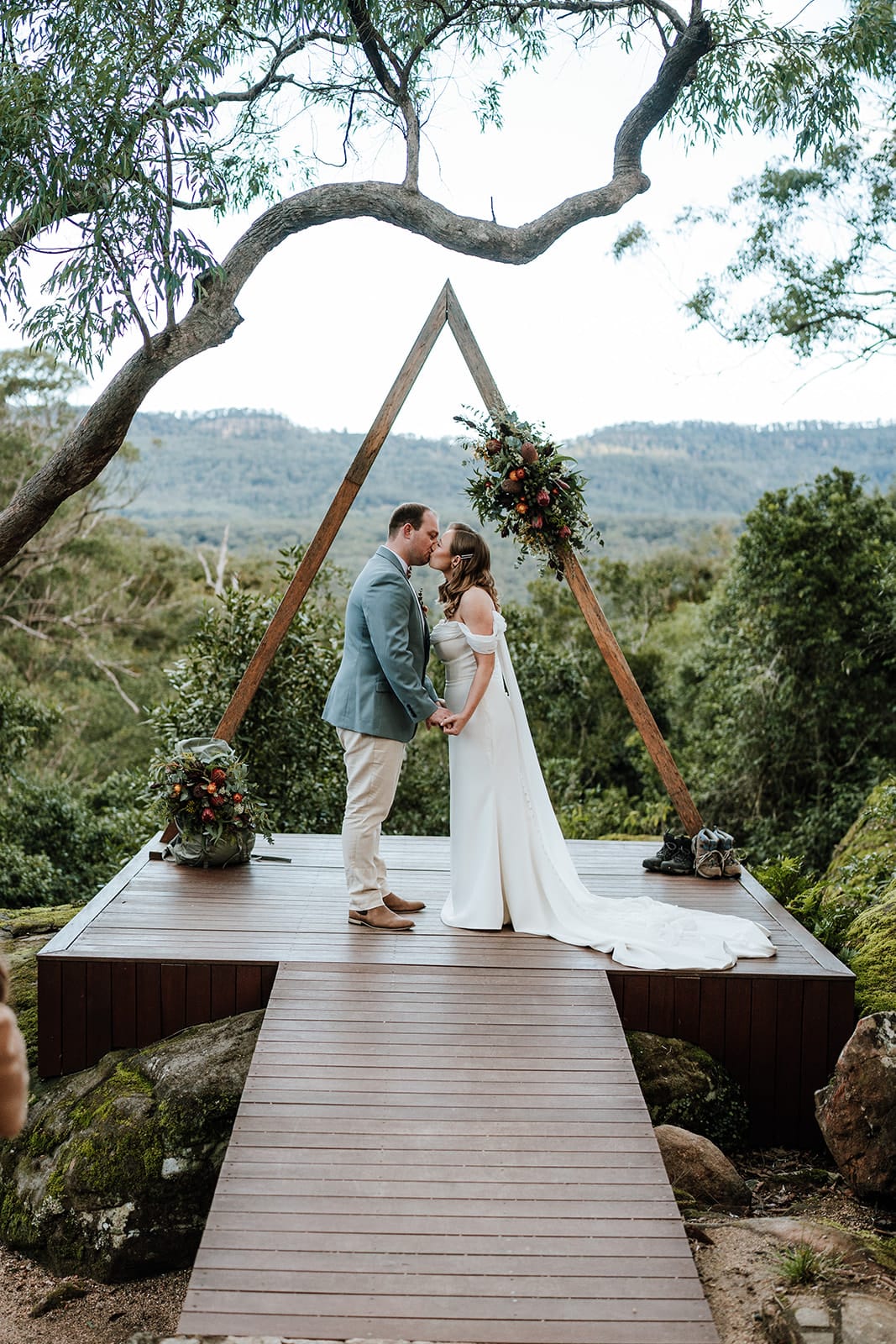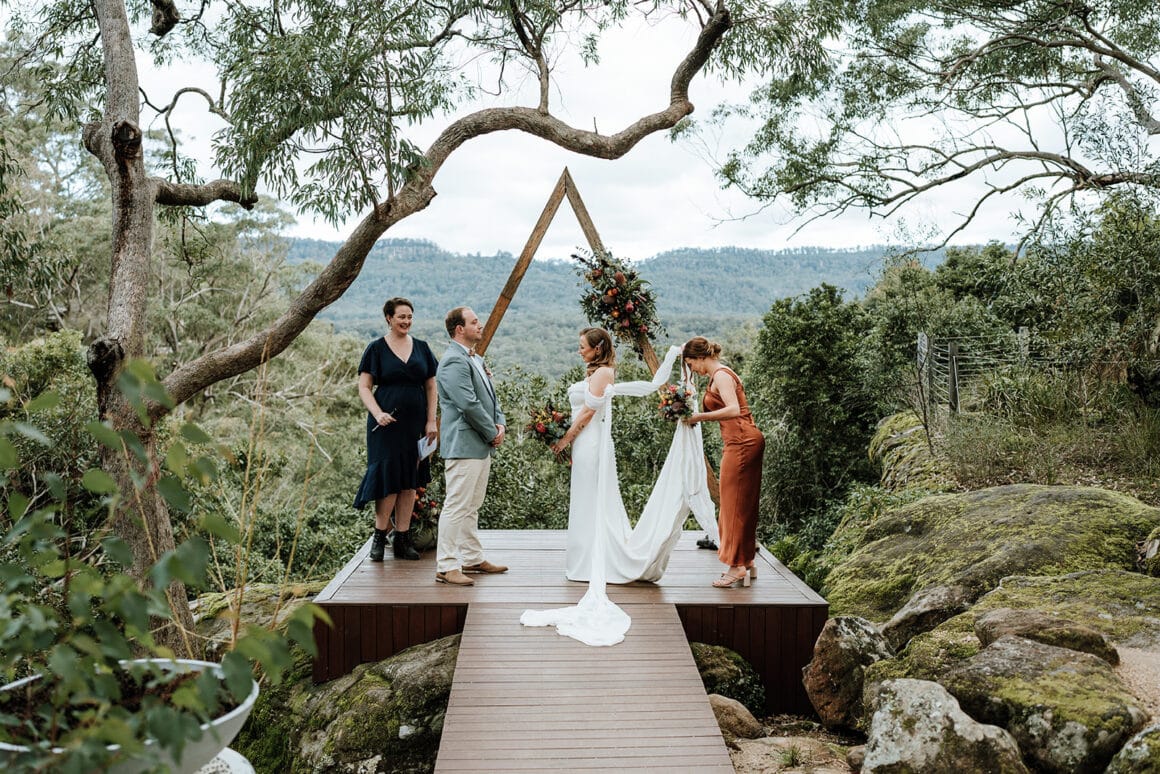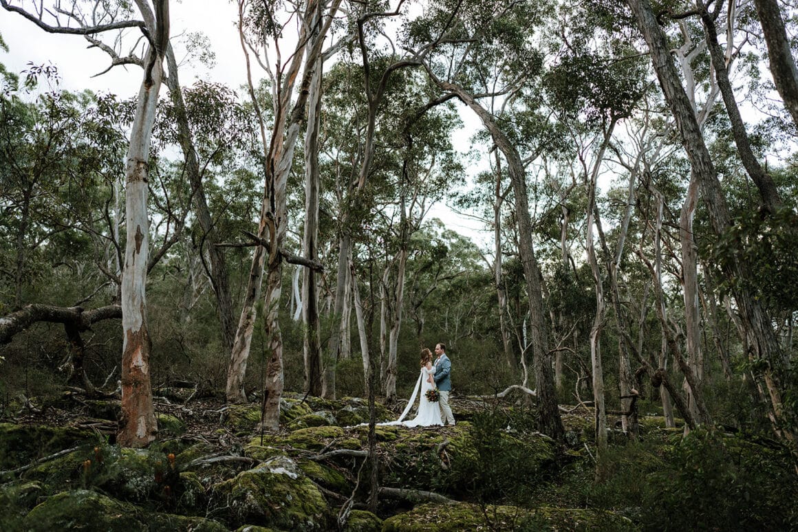 Lorsque Liz et Joel sont entrés dans le parc de Wildwood, ils «se sont instantanément sentis en paix». Avec son charme rustique, sa foresterie verte luxuriante et le ton tranquille de l'eau courante à proximité, c'était l'endroit idéal pour effectuer leur mariage de la vallée du Kangourou. De plus, lorsque Wildwood a confirmé que les chats du couple étaient les bienvenus, l'accord a été scellé!