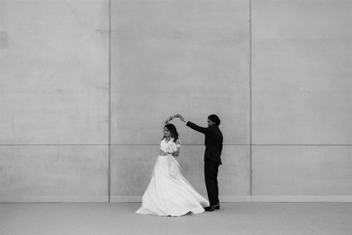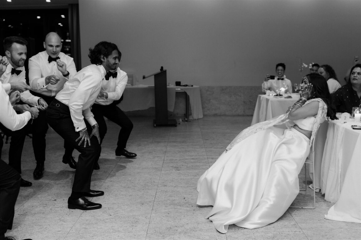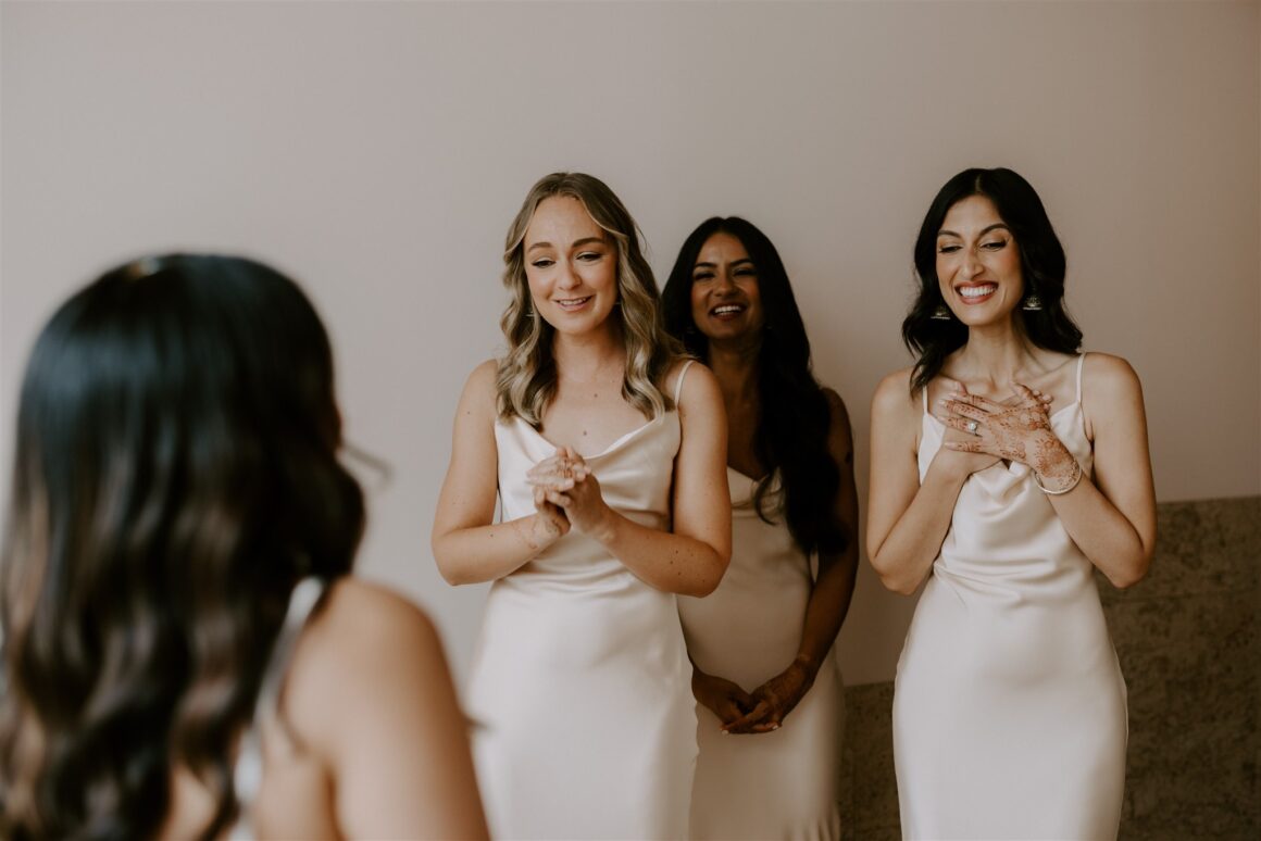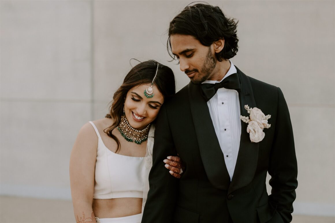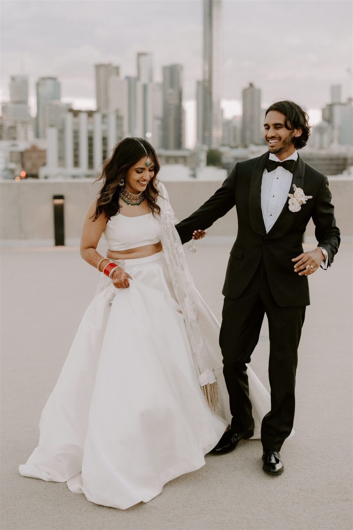 « Nous avons eu un premier regard environ une heure avant le début de la cérémonie. Nous étions seuls (avec notre photographe Janneke et le vidéaste Luke) pendant que nous nous lisions nos vœux. C'était agréable de partager des moments plus intimes et plus calmes ensemble avant. Le deuxième souvenir spécial était de nous asseoir pour faire la bénédiction hindoue, nous avons regardé dehors et avons vu une mer de nos personnes préférées – les mots ne peuvent pas décrire le bonheur que nous avons ressenti à ce moment-là. Nous avons vraiment eu de la chance d'avoir de la famille venue de diverses parties du monde pour nous célébrer. Dernier et surtout, Gihan, les garçons d'honneur, notre MC et mon frère ont préparé une danse pour me surprendre à la réception. Gihan a fait un mélange de toutes mes chansons et bobines Instagram préférées, et a incorporé beaucoup de mes propres mouvements de danse « cool » du jour ! »