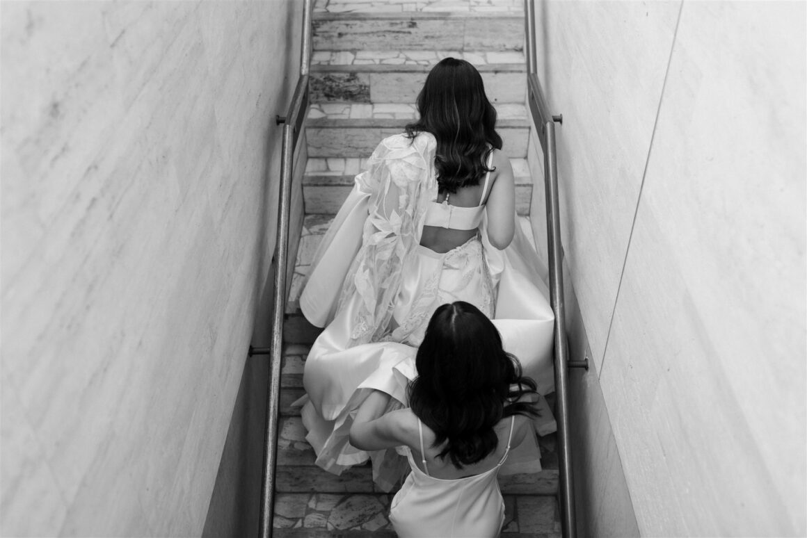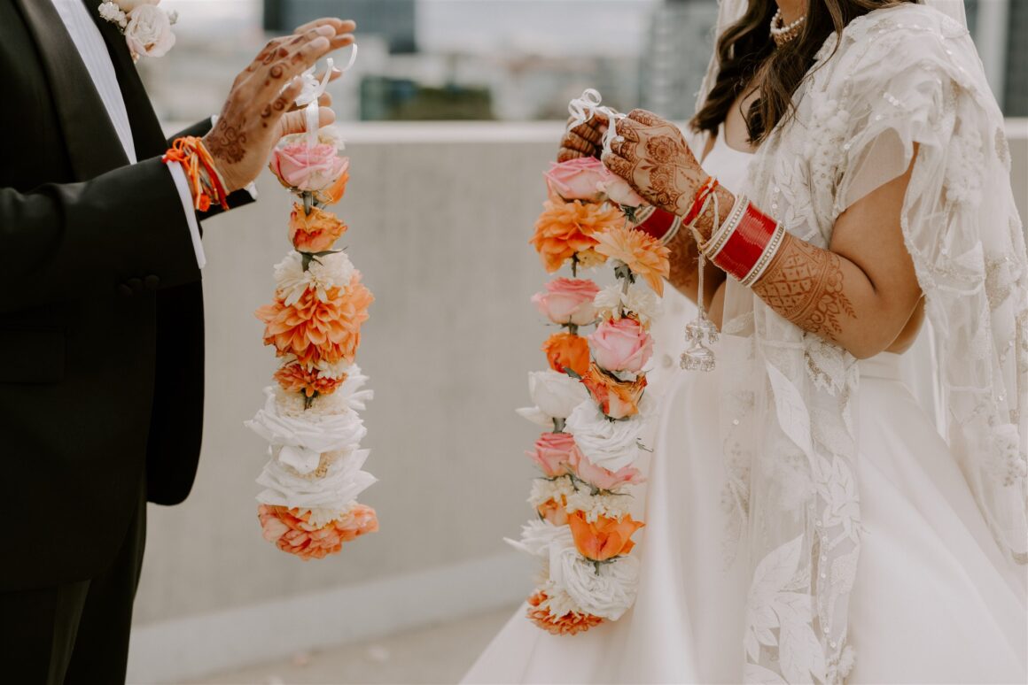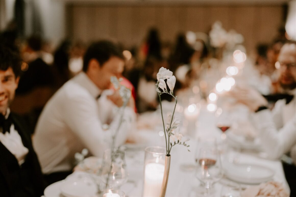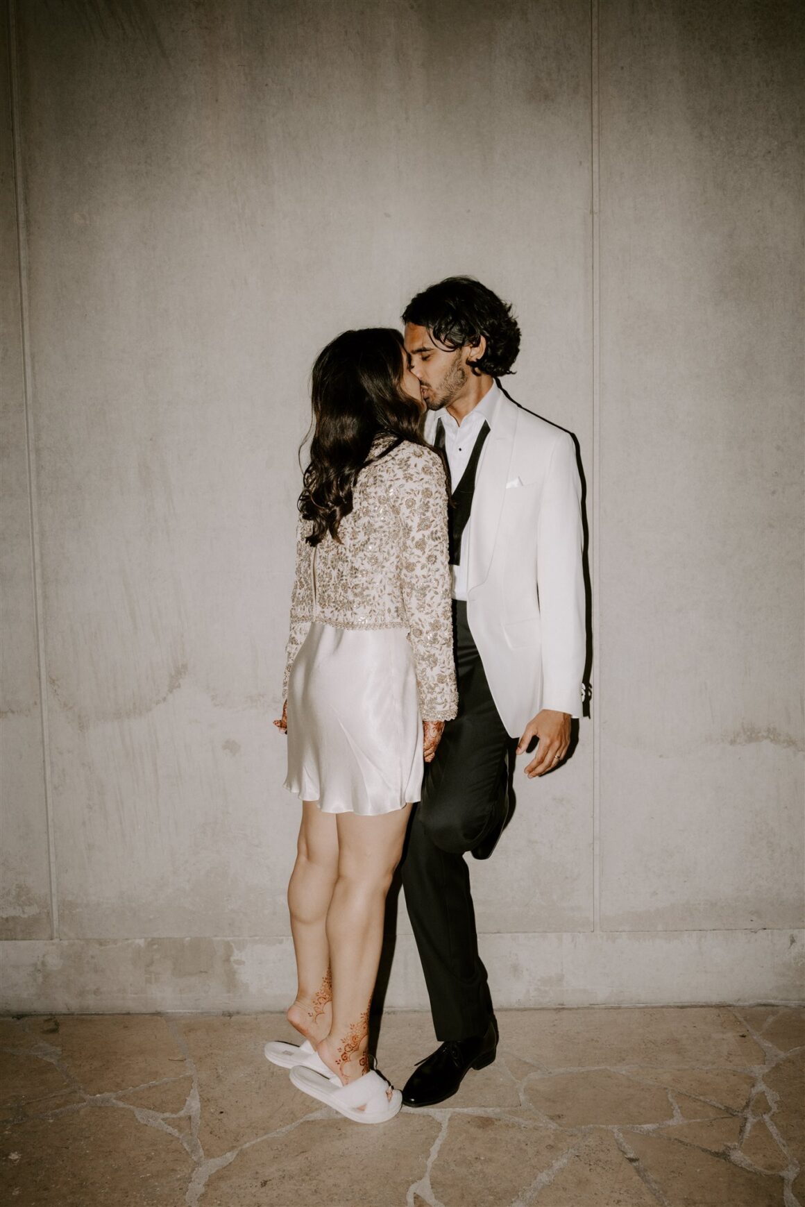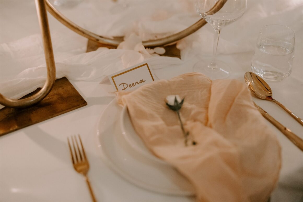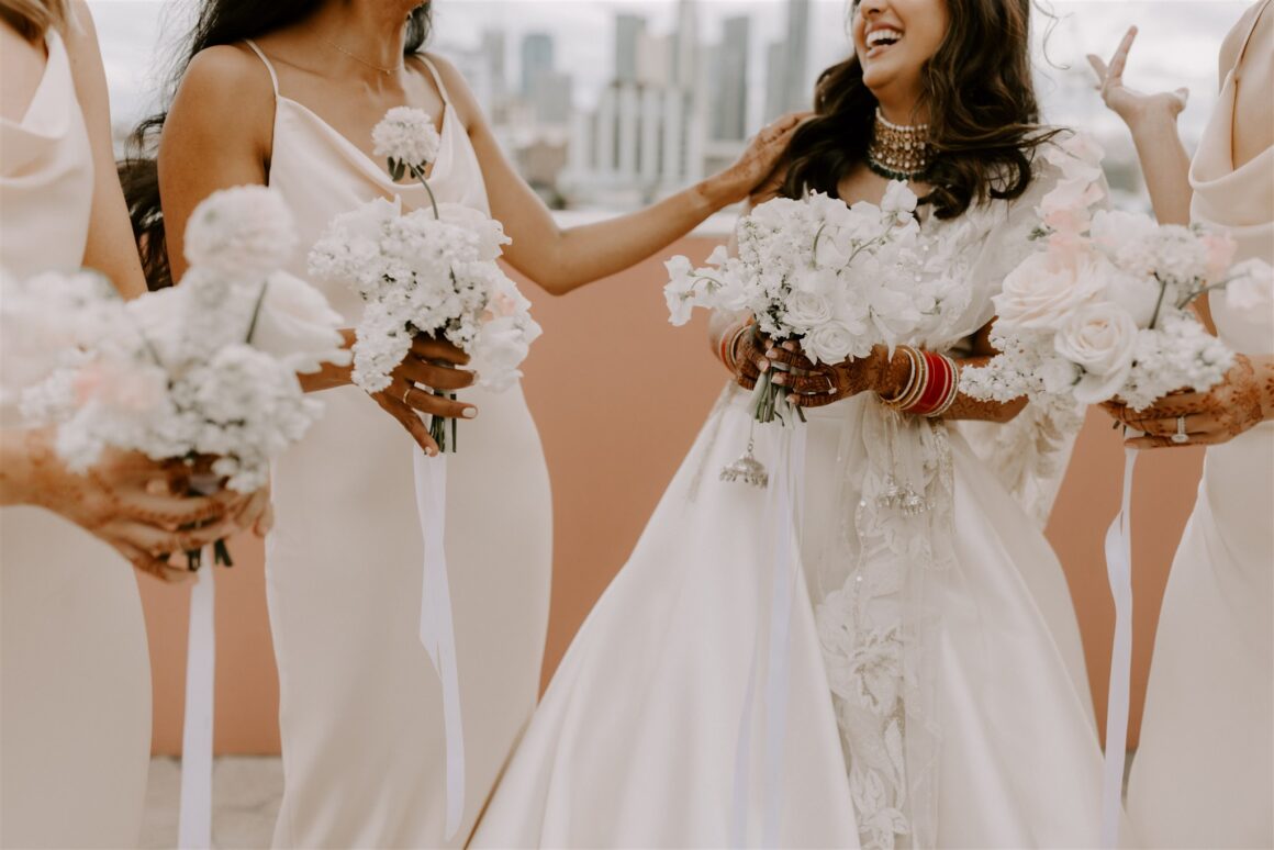 « Nous avons eu un premier regard environ une heure avant le début de la cérémonie. Nous étions seuls (avec notre photographe Janneke et le vidéaste Luke) pendant que nous nous lisions nos vœux. C'était agréable de partager des moments plus intimes et plus calmes ensemble avant. Le deuxième souvenir spécial était de nous asseoir pour faire la bénédiction hindoue, nous avons regardé dehors et avons vu une mer de nos personnes préférées – les mots ne peuvent pas décrire le bonheur que nous avons ressenti à ce moment-là. Nous avons vraiment eu de la chance d'avoir de la famille venue de diverses parties du monde pour nous célébrer. Dernier et surtout, Gihan, les garçons d'honneur, notre MC et mon frère ont préparé une danse pour me surprendre à la réception. Gihan a fait un mélange de toutes mes chansons et bobines Instagram préférées, et a incorporé beaucoup de mes propres mouvements de danse « cool » du jour ! »
