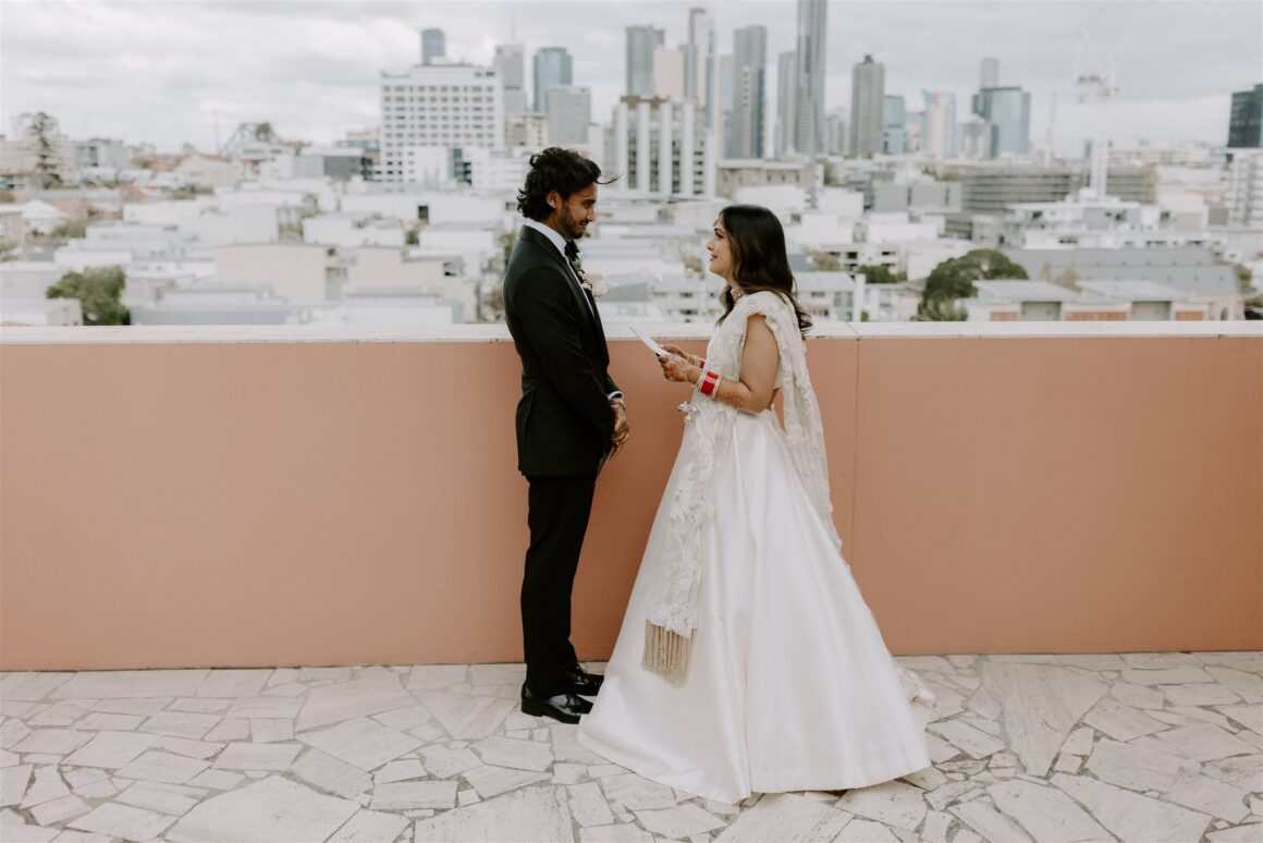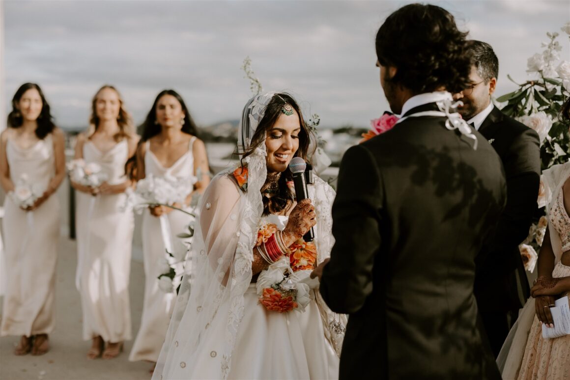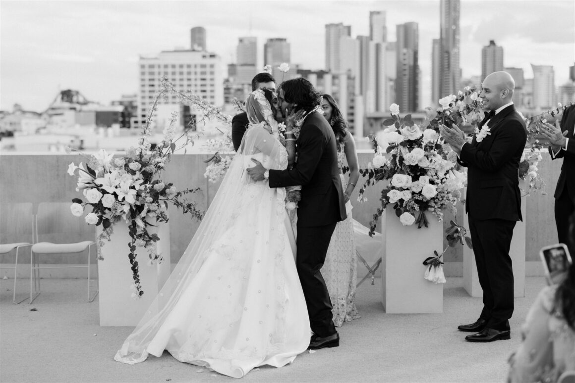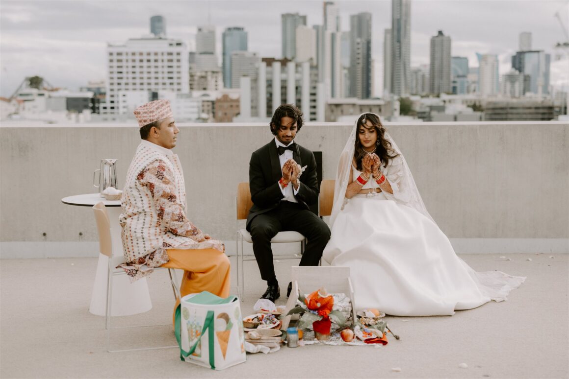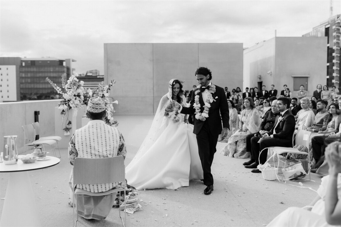 Organisée au célèbre hôtel Calile de Brisbane, la journée de Sanj et Gihan a été une recette de moments sincères, de moments de rire, de nombreux moments de bonheur et de traditions culturelles significatives. « Nous venons tous les deux d'horizons culturels différents – Gihan est sri lankais (catholique) et je suis indien (hindou). Nous voulions une cérémonie qui honore ces deux cultures de manière égale et, en tant que telle, soit créative », explique Sanj.