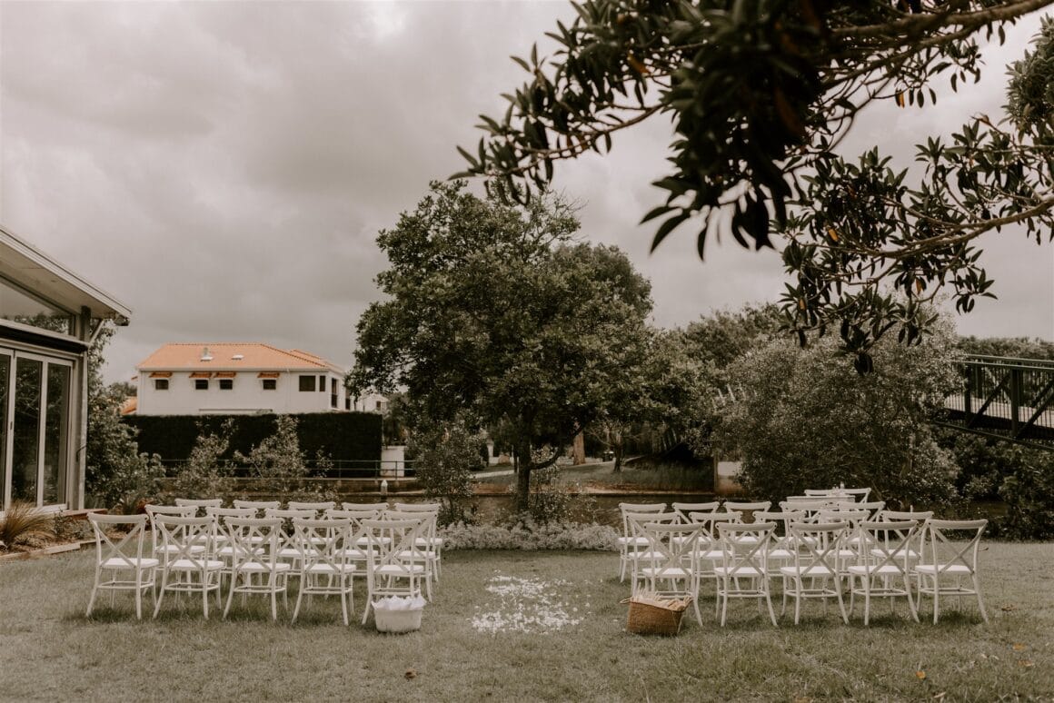LE LIEU «Au départ, nous avions envisagé des mariages immobiliers dans l'arrière-pays de Noosa, mais le coût et la logistique liés à la venue de chaque vendeur et le manque d'hébergement à proximité pour nos invités ont exclu cette possibilité. Lorsque nous avons vu le restaurant Noosa Waterfront, nous en étions très satisfaits.