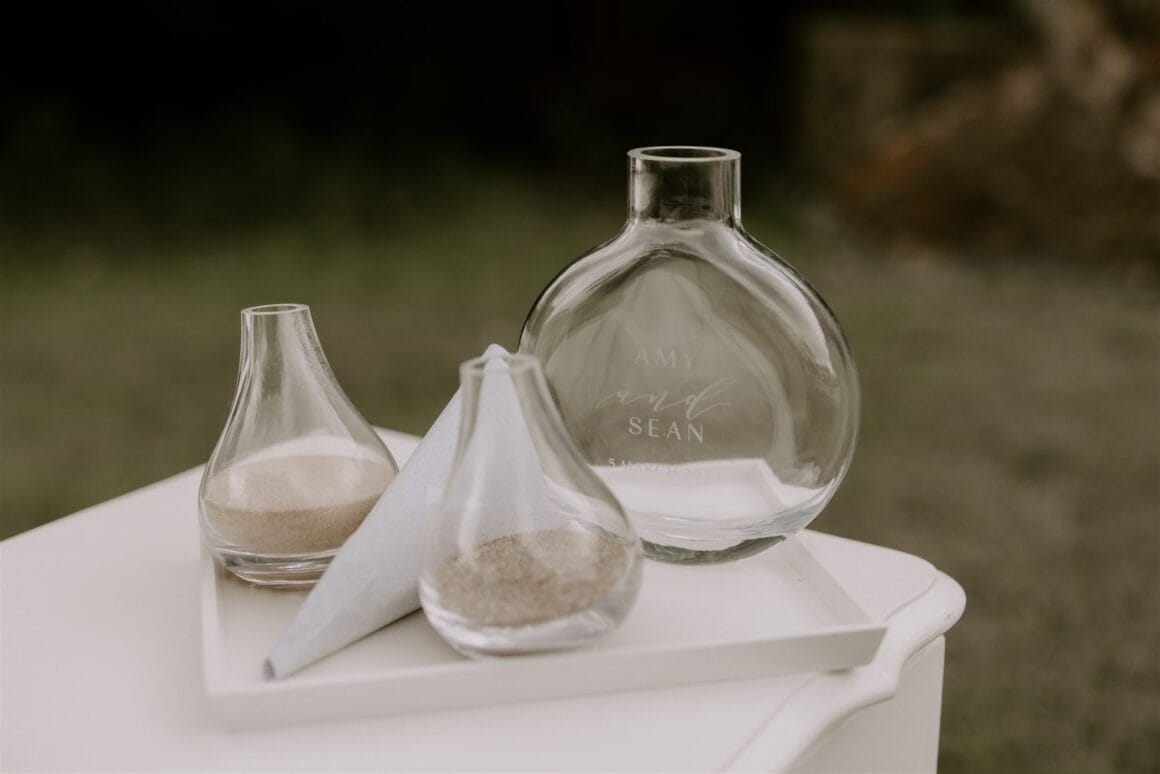 COOL PERSONNALISÉ « Nous avons organisé une cérémonie du sable, mélangeant du sable d'Irlande et d'Afrique du Sud, d'où nous sommes tous les deux originaires. Amy a toujours eu une collection de sable provenant des lieux visités.