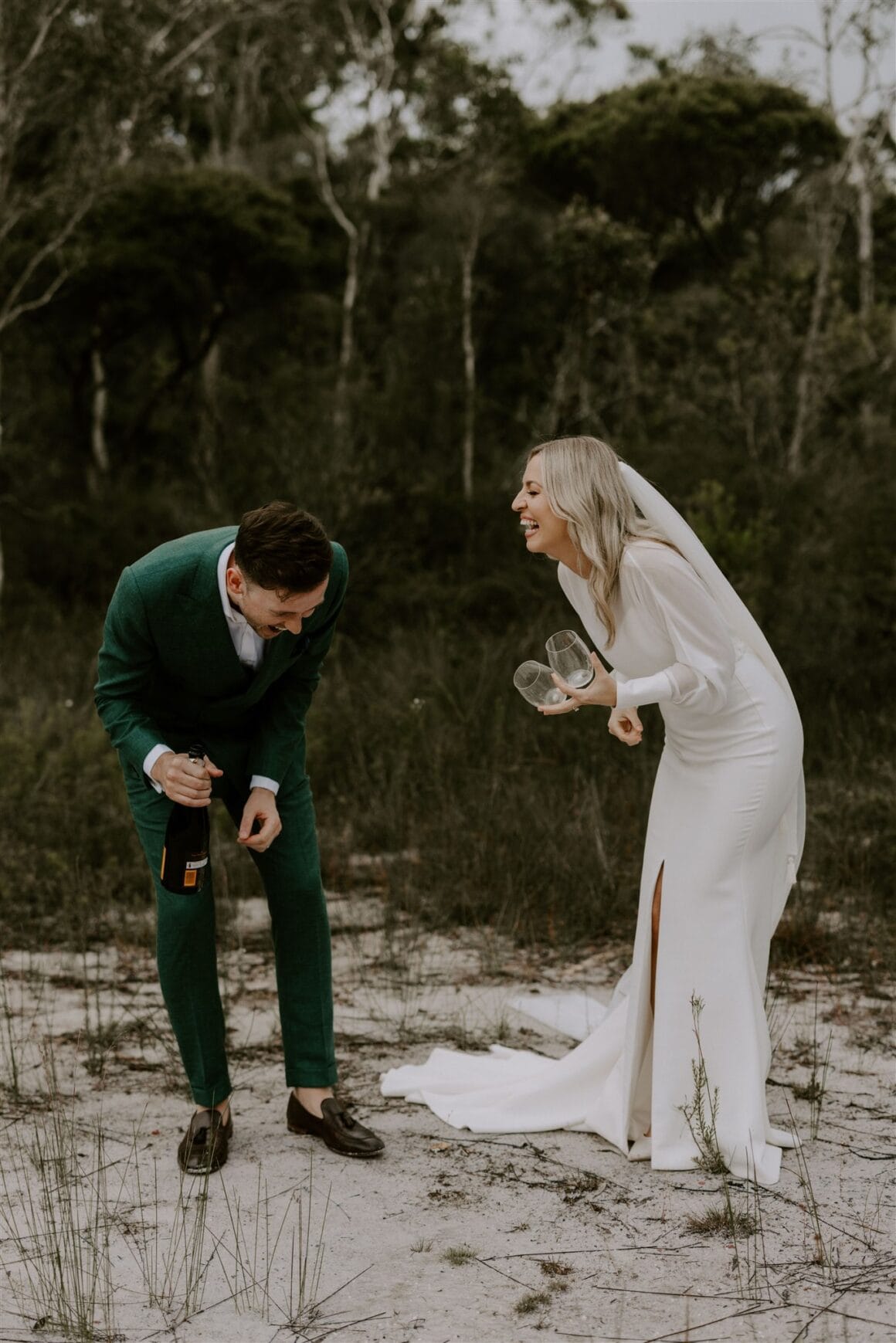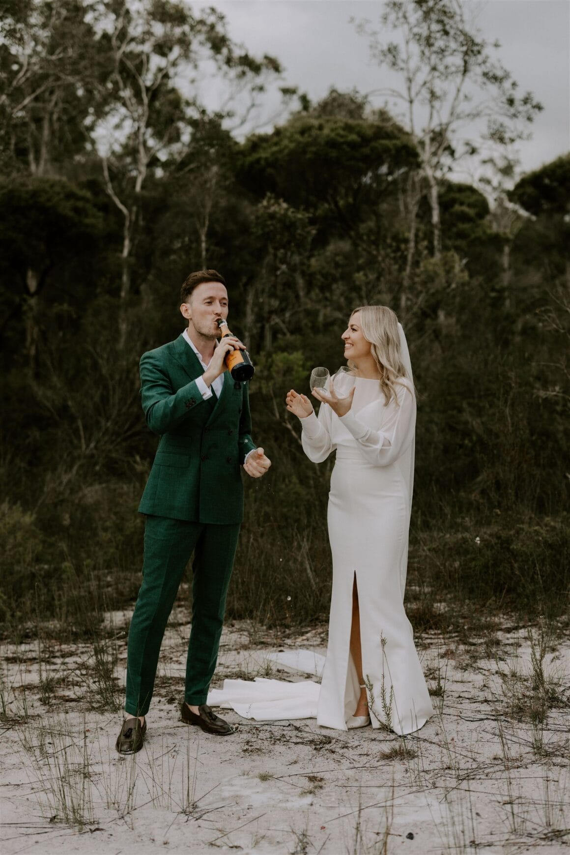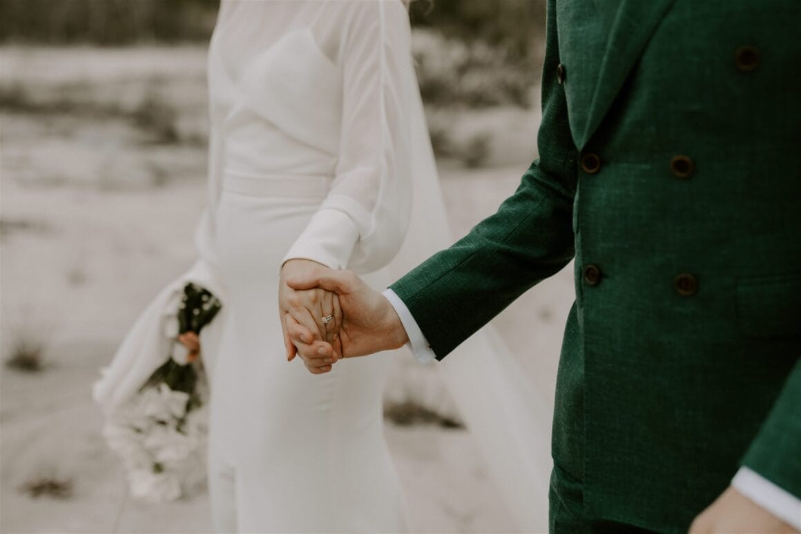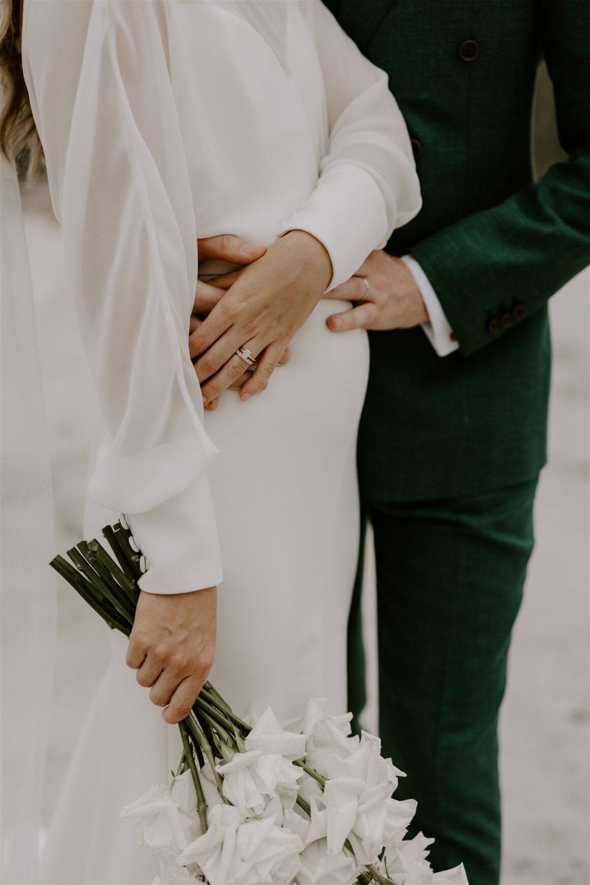 Nous devons dire que ces héros de la santé étaient un spectacle à faire mal aux yeux. Même si c'était la première qu'elle essayait, Amy a immédiatement su que sa robe Karen Willis Holmes était la bonne, et Sean arborait la coupe personnalisée verte la plus épique avec un bouton MJ Bale. C'était élégant, chic et détendu, et les tourtereaux nous ont dit que se préparer aux côtés de la famille était un moment fort. Tout comme voler du temps seule pendant que la photographe Janneke Storm faisait son truc. « Janneke fait un très bon travail en vous faisant sentir à l'aise et naturel devant la caméra. »