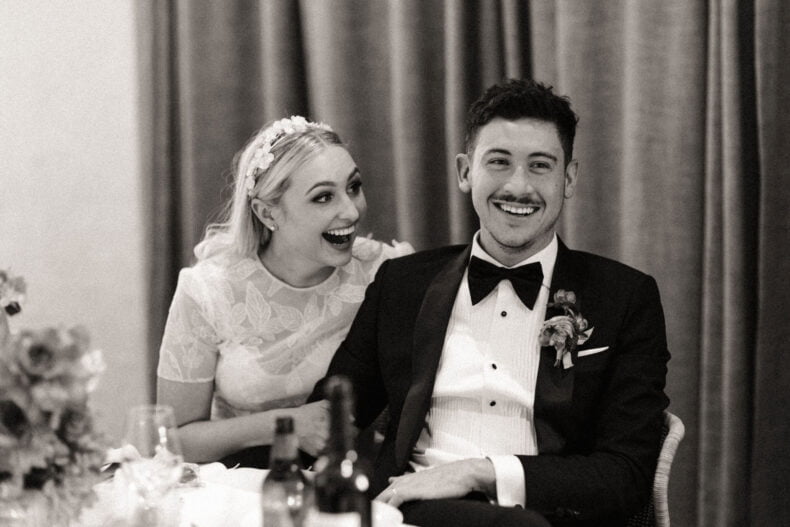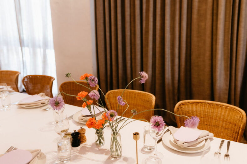 L’INSPO « Nous voulions que notre mariage soit une véritable représentation de nous en tant que couple, c’est pourquoi le thème général du mariage était axé sur des couleurs vives, une célébration de l’amour et une piste de danse animée. Notre styliste Cassie Smith a parfaitement réussi lorsqu’elle nous a présenté la palette de couleurs globale et nous avons eu tellement de plaisir à travailler ensemble pour voir la vision prendre vie. Nous avons eu tellement de chance d’avoir nos bons amis DJ, Naive Fantas, pour s’occuper de la musique de notre réception car ils ont parfaitement choisi la musique en fonction de l’énergie de la journée. La piste de danse explosait en fin de soirée !