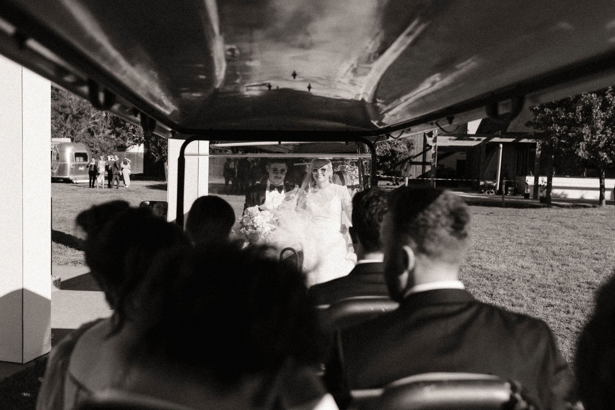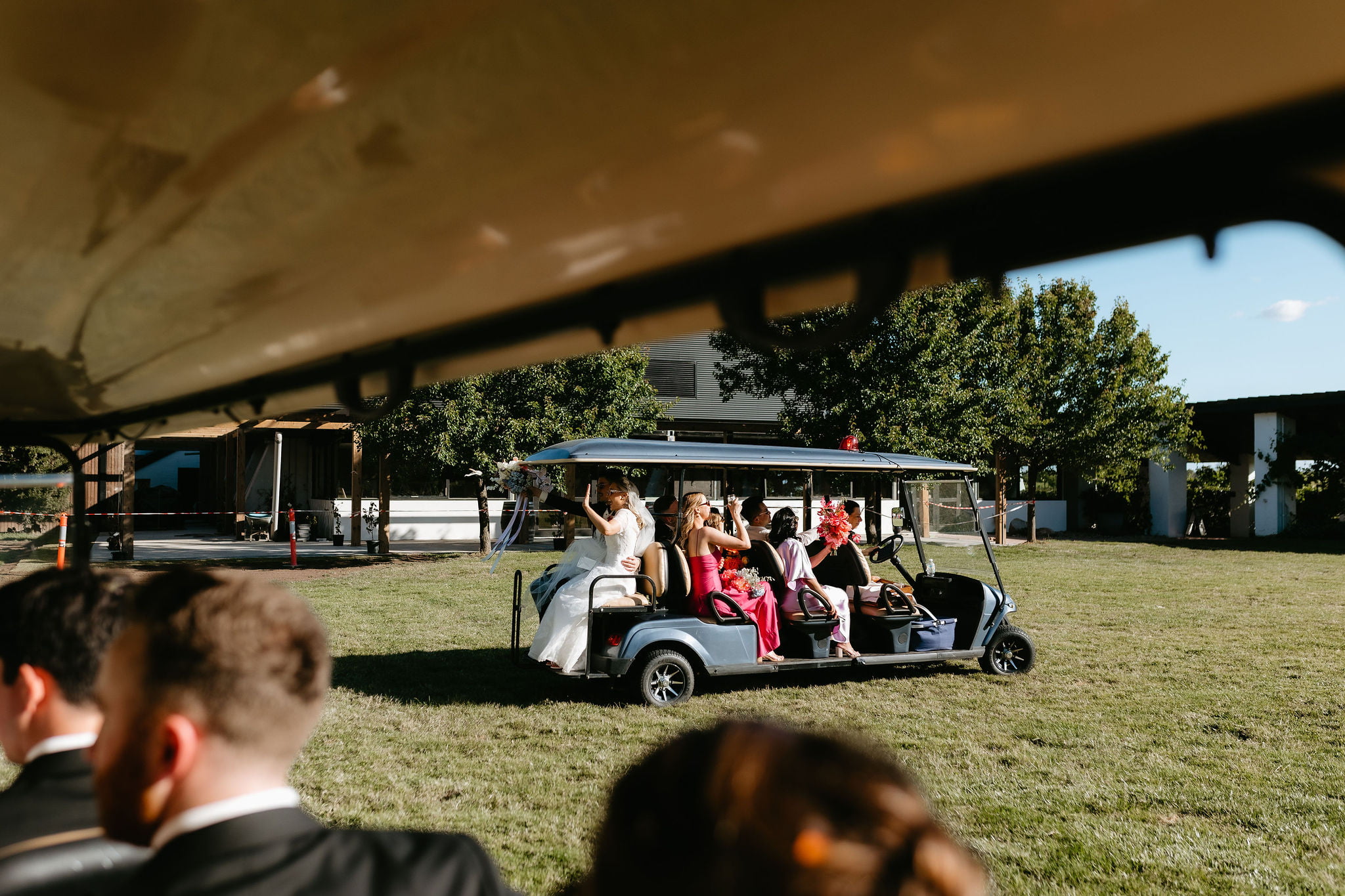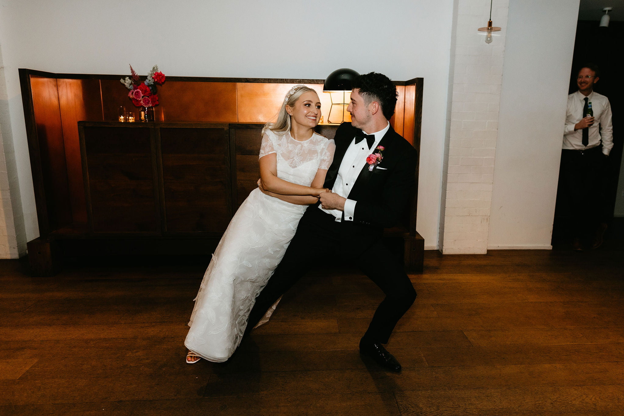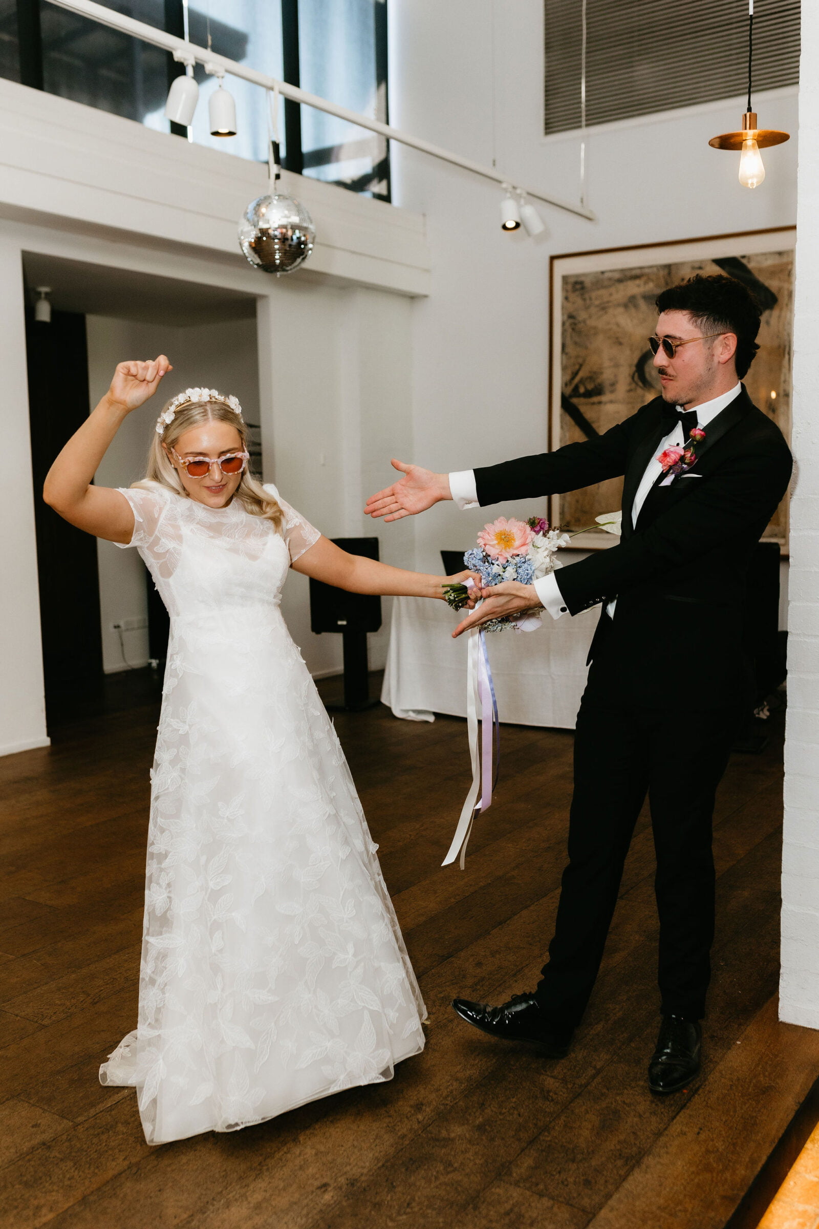 La couleur et la musique étaient au centre des préoccupations d’Annabel et Will lors de la planification de leur mariage à Mitchelton Winery à Nagambie, à une heure et demie de Melbourne. Ils avaient ces paroles de sagesse à partager : « Le son joue un rôle important dans le type d’ambiance que vous souhaitez créer. Choisissez judicieusement vos fournisseurs. Notre conseil ? La discothèque des années 70 est la meilleure entrée en matière pour faire la fête ! » Aimer!