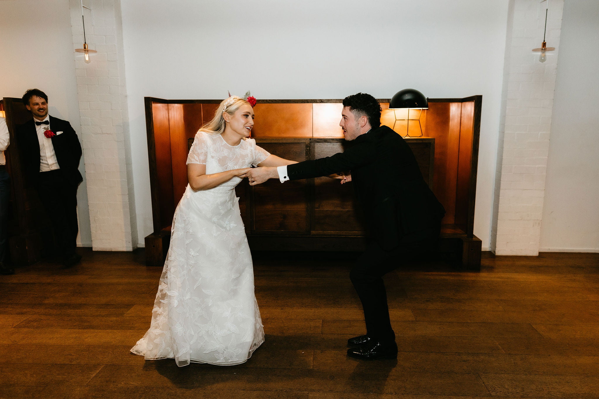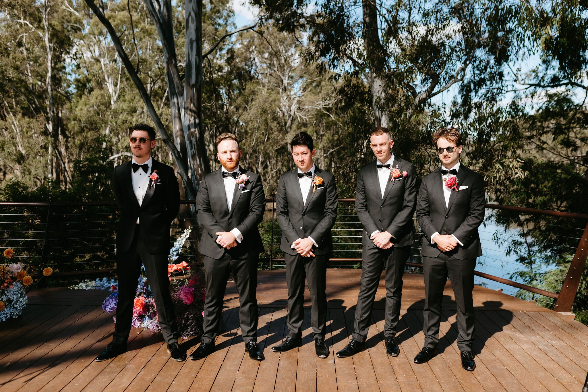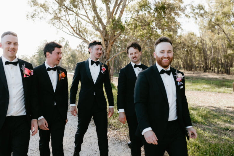 Miranda Stokkel Directeur de la photographie Ellena Louise Styliste, papeterie et signalétique Cassie Smith Fleuriste Honnêteté Flore Imprimante PaperMarc Lieu de cérémonie et de réception Domaine viticole Mitchelton Gâteau Frank et Harris Louer des articles Bangin Hangins, Petites choses Co Divertissement Ed Hawke, Fantasmes naïfs Ministre Gordon Sauvage Anneaux Pierre Arnold Marié Angus et Coote Bougies Bougie Co THE BRIDE Créateur de robe de mariée et voile Luci Di Bella Morceau de cheveux TrouvéVousParures Chaussures Chaussures nues Cheveux Mapel & Cie Se maquiller Stéphanie Botrell Robes de demoiselle d’honneur Aje, Bec + Bridge, ASOS, MJ Bale Cadeaux de demoiselle d’honneur Chelsea Peers New York LE MARIÉ Costume, chemise, boutons de manchette et costumes de garçon d’honneur Tailleurs YSG Cravate Décliquez Chaussures Jules Marlow Coiffeur Le barbier