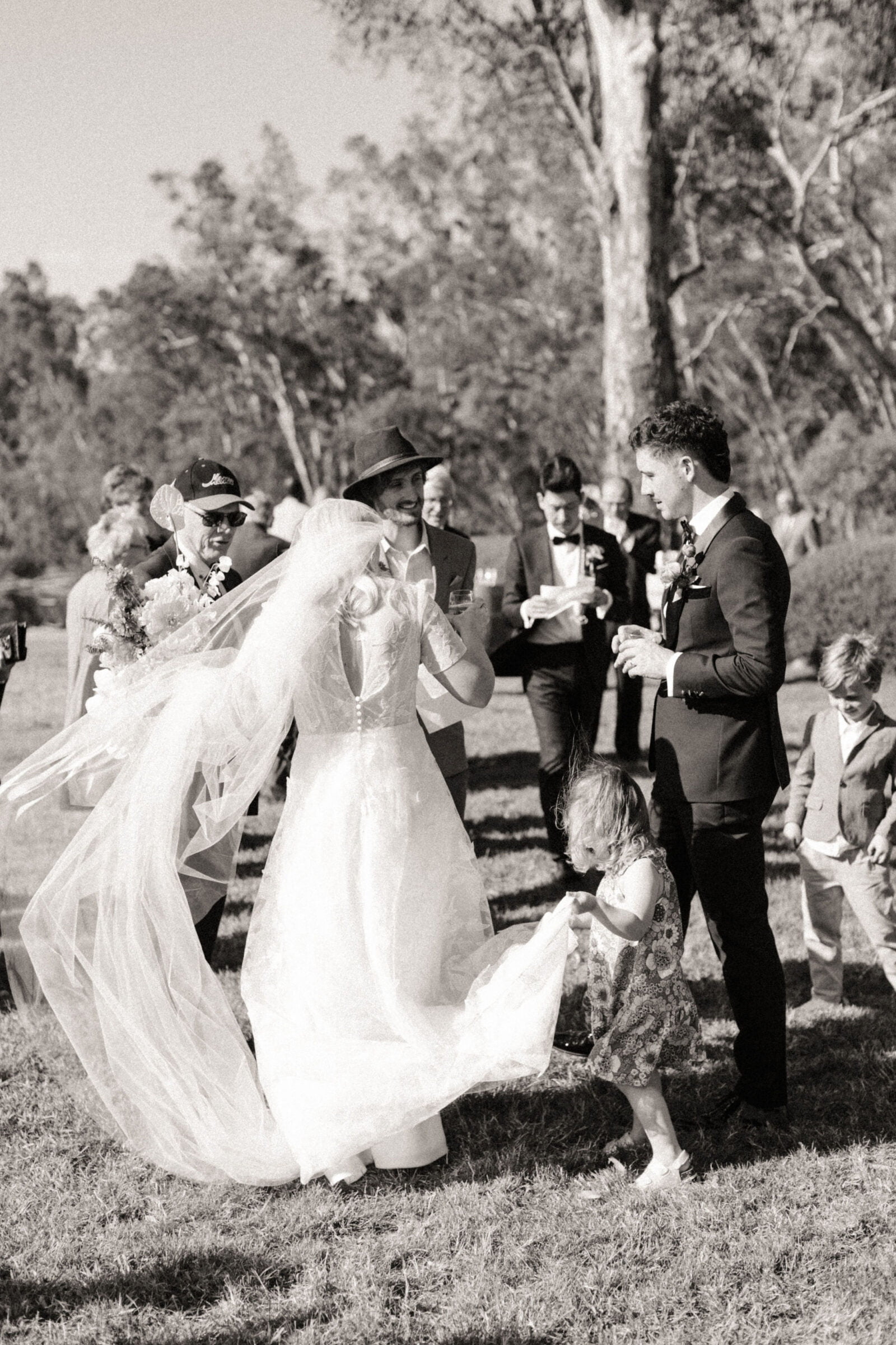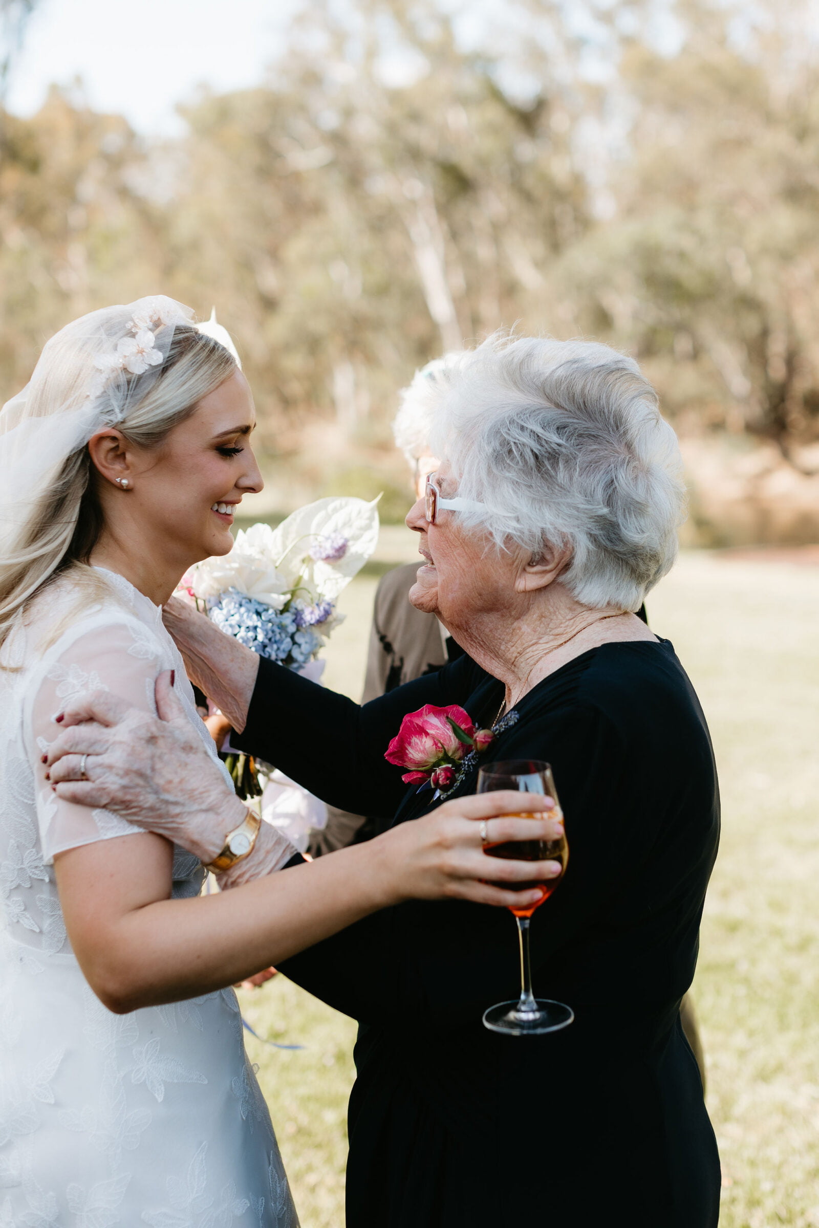 TOUCHE DE TRADITION « Nous avons demandé à la tante d’Annabel de faire une reconnaissance du pays pour commencer notre cérémonie. Comme notre mariage a eu lieu sur les rives de la rivière Goulburn, il était particulièrement important de reconnaître le peuple Taungurung, les propriétaires traditionnels, et le soin qu’ils ont apporté à la terre depuis des milliers d’années. Nous avons également eu une photo hommage à nos grands-parents, qui était visible par les invités dès leur entrée dans l’espace de réception. En présence d’Elva, la grand-parente maternelle d’Annabel, nous voulions rendre hommage à nos grands-parents qui n’avaient pas pu être avec nous ce jour-là.