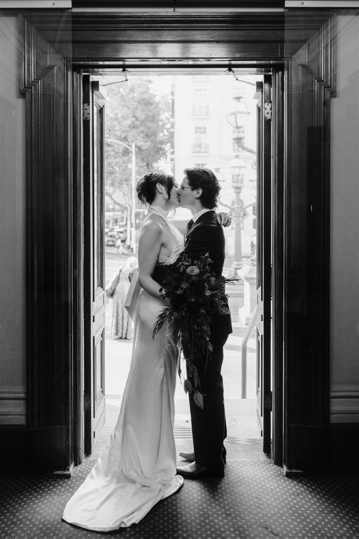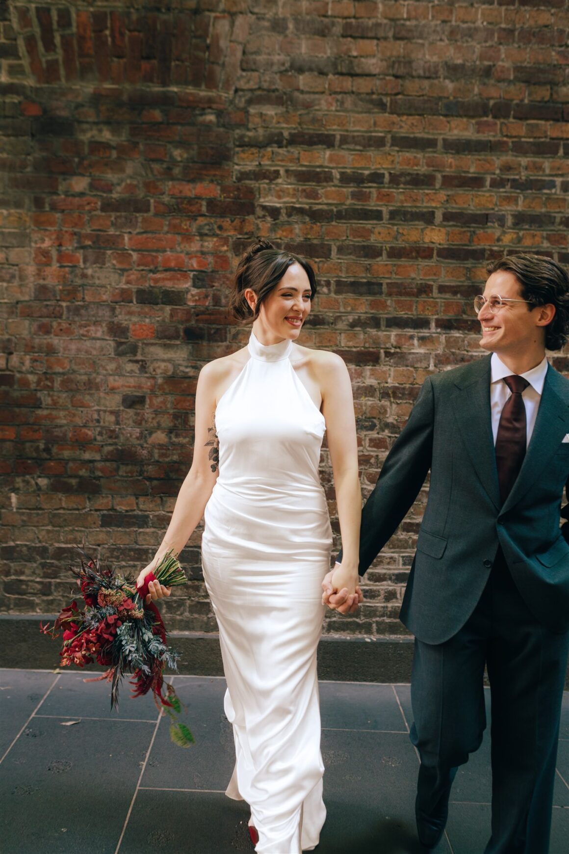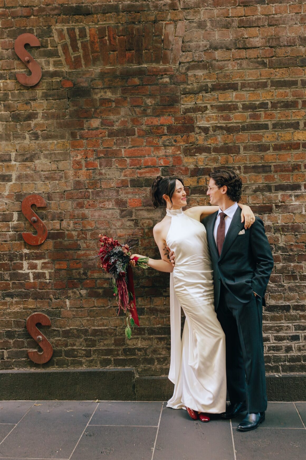 Ce couple de chats cool, Roxanne et Alexander, s'est marié à Melbourne pour une célébration esthétiquement sombre, maussade, romantique et amusante – le tout réuni en un. C'est au bureau d'état civil local que se sont déroulés les événements officiels et la réception a suivi à Bobbie Peels (le premier mariage organisé dans cet espace, et quel banger !)