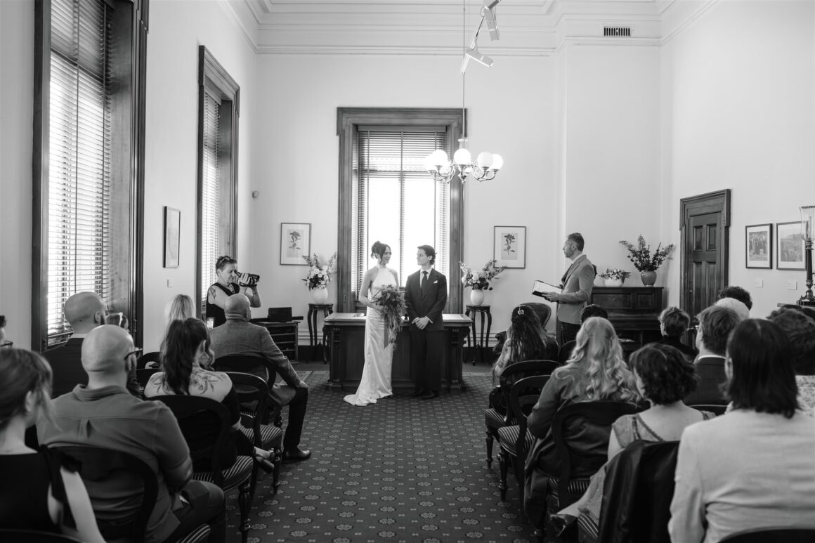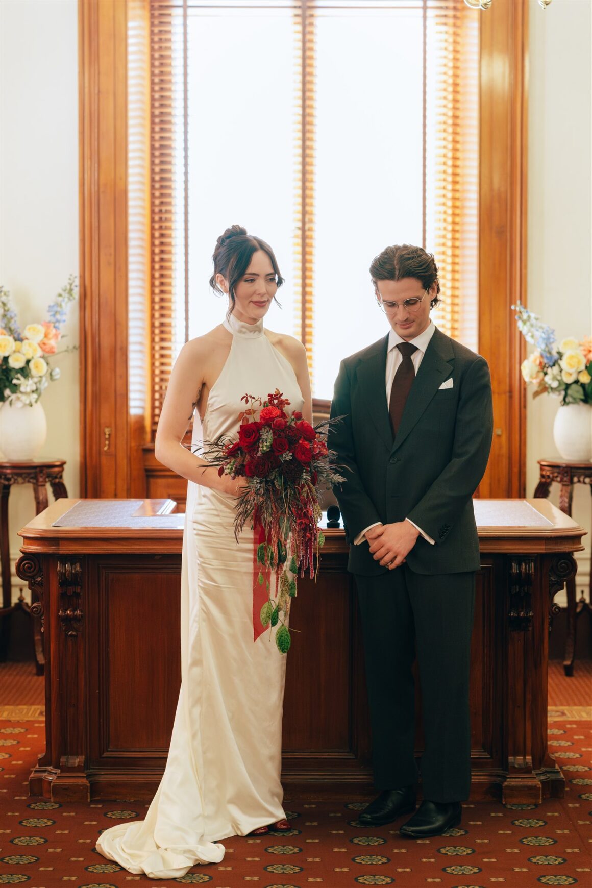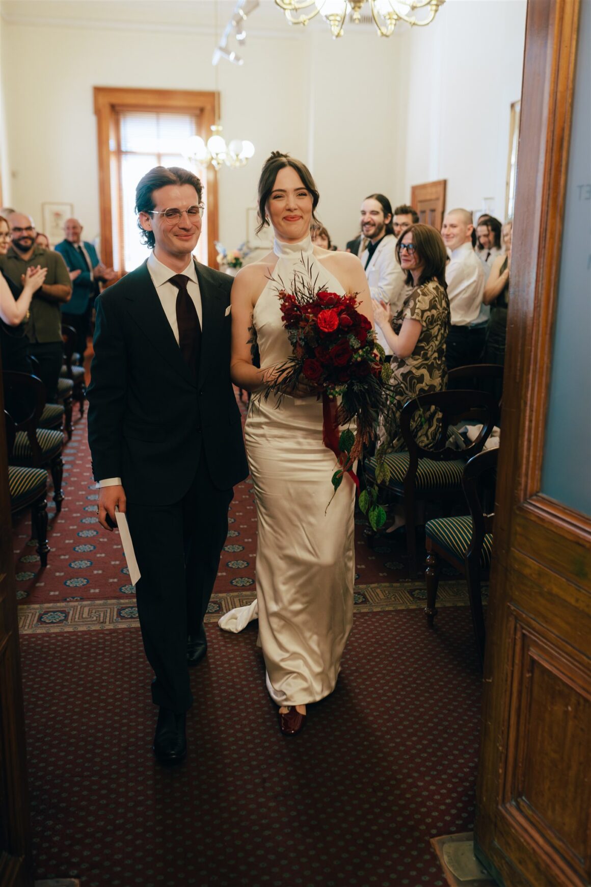 Ce couple de chats cool, Roxanne et Alexander, s'est marié à Melbourne pour une célébration esthétiquement sombre, maussade, romantique et amusante – le tout réuni en un. C'est au bureau d'état civil local que se sont déroulés les événements officiels et la réception a suivi à Bobbie Peels (le premier mariage organisé dans cet espace, et quel banger !)