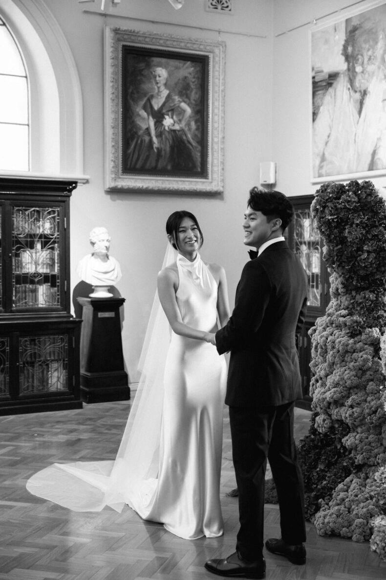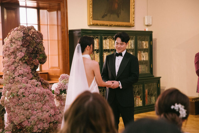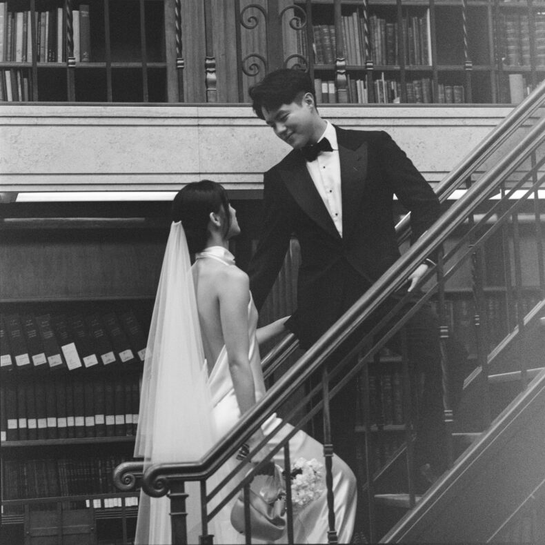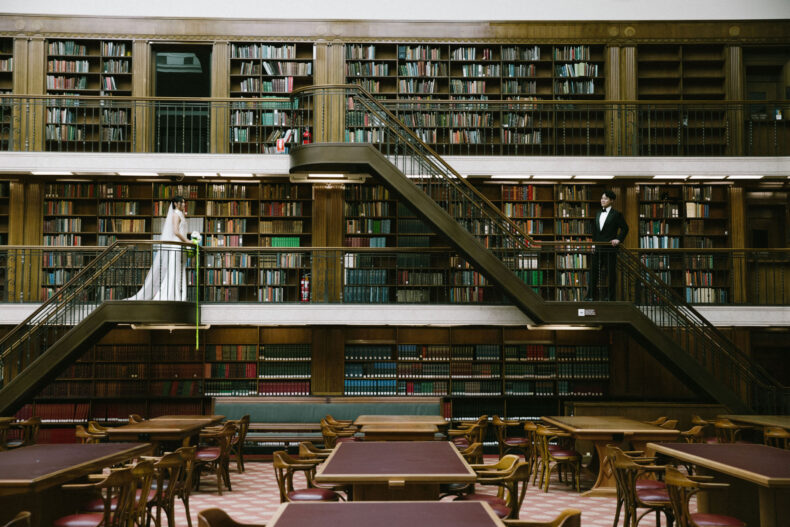 LE LIEU « Aaron et moi avions en fait choisi le lieu de la réception avant de décider du lieu de la cérémonie. Nous étions déterminés à célébrer notre journée spéciale à l’Opéra car il symbolise pour nous notre chez-soi. C’est à partir de là que nous avons décidé de tenir notre cérémonie à la Bibliothèque d’État, et deux facteurs ont joué un rôle central dans ce choix : sa proximité avec le lieu de réception et sa structure architecturale remarquable. »