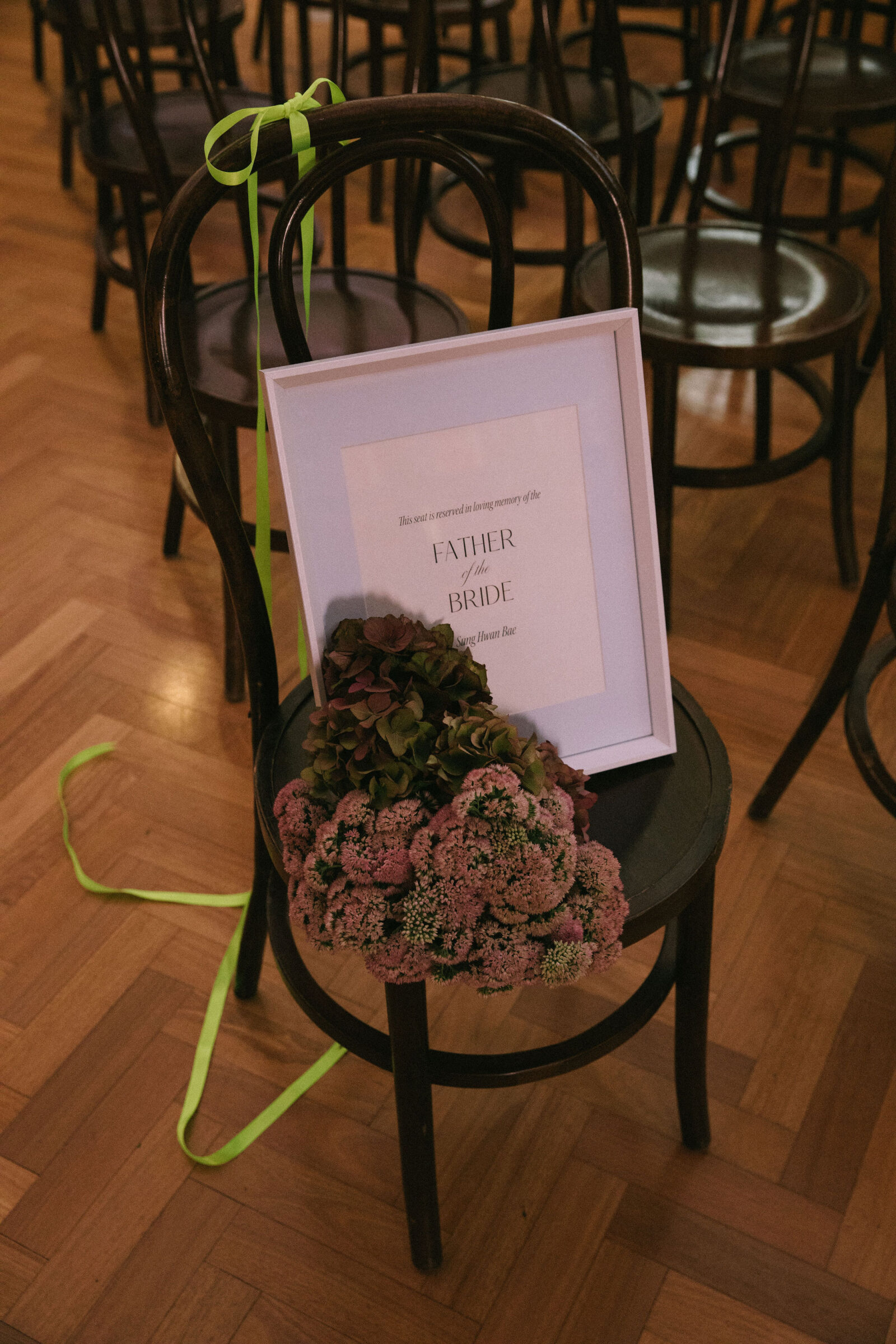 DÉTAILS PRÉFÉRÉS « Le ruban néon extra-long sur mon bouquet de Fritillerie était un élément remarquable. Je n’avais jamais vu une mariée utiliser un ruban fluo pour son bouquet de fleurs, et j’ai adoré la façon dont cela ajoutait une touche chic à mon esthétique globale.