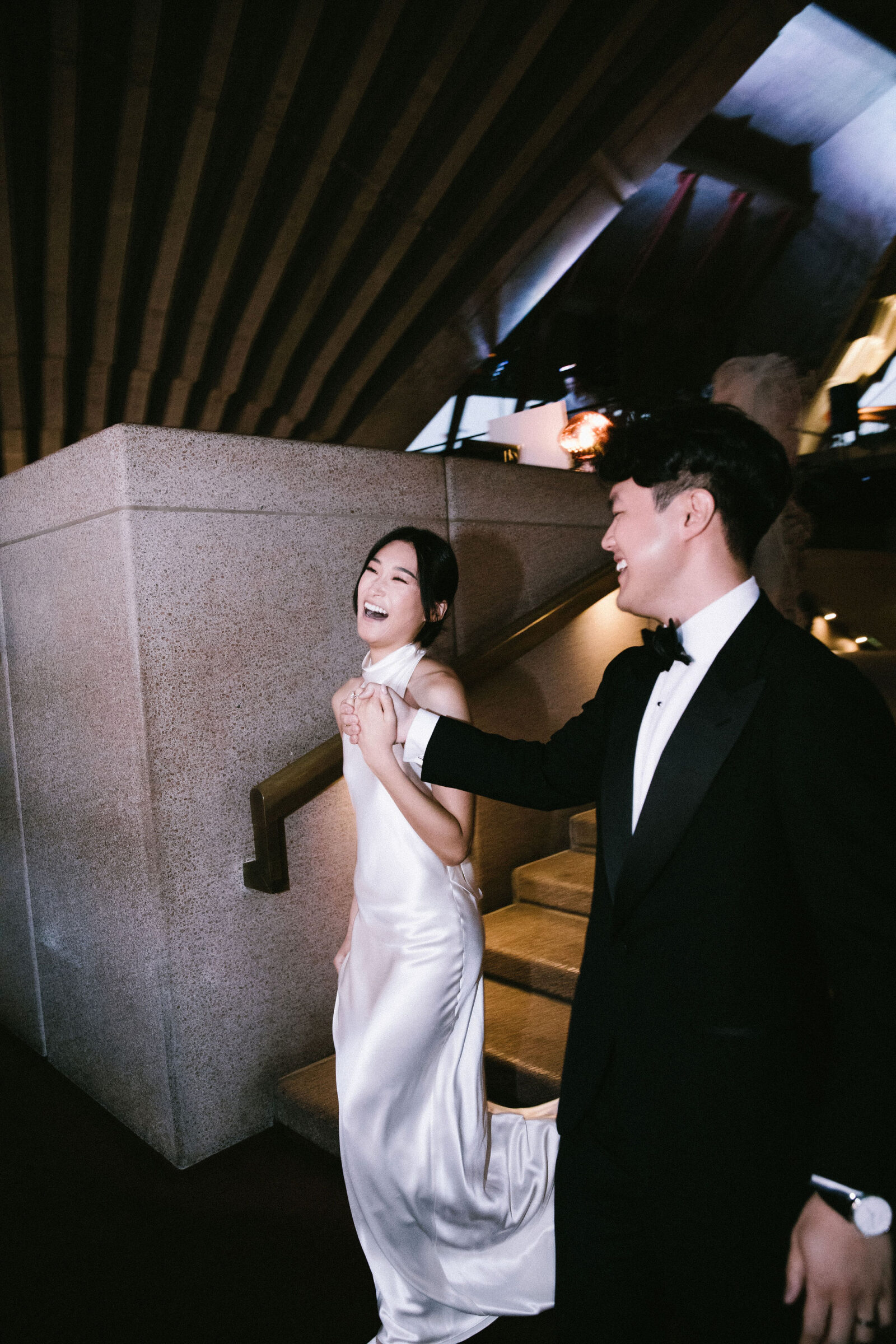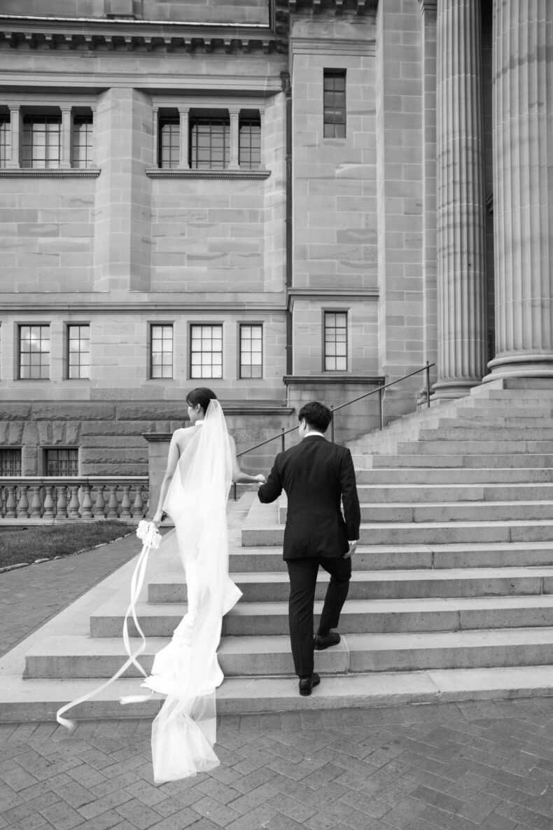 LE LIEU « Aaron et moi avions en fait choisi le lieu de la réception avant de décider du lieu de la cérémonie. Nous étions déterminés à célébrer notre journée spéciale à l’Opéra car il symbolise pour nous notre chez-soi. C’est à partir de là que nous avons décidé de tenir notre cérémonie à la Bibliothèque d’État, et deux facteurs ont joué un rôle central dans ce choix : sa proximité avec le lieu de réception et sa structure architecturale remarquable. »