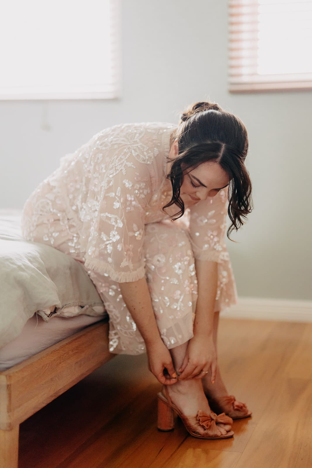 LA ROBE «J'ai acheté ma robe en ligne chez Needle & Thread. Je n'avais jamais essayé aucune de leurs robes, ni vue dans la vraie vie, alors j'ai simplement suivi le guide des tailles, croisé les doigts et espéré le meilleur. Je voulais quelque chose de spécial, mais qui ne soit pas trop formel ou traditionnel. Une fois que j’ai eu la robe de mariée rose, j’ai opté pour le tout rose ! Je suis allé en ligne et j'ai trouvé les chaussures, le sac et les lunettes de soleil pour tout rassembler.