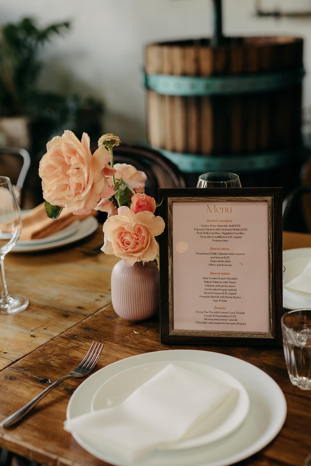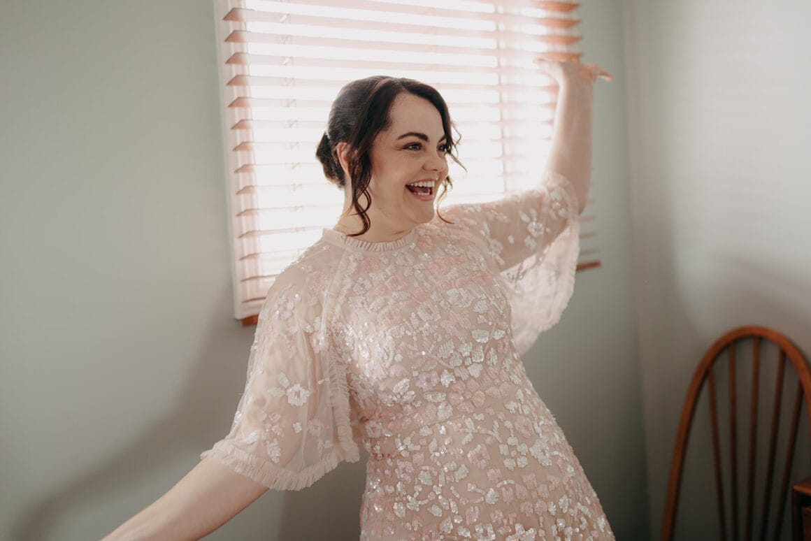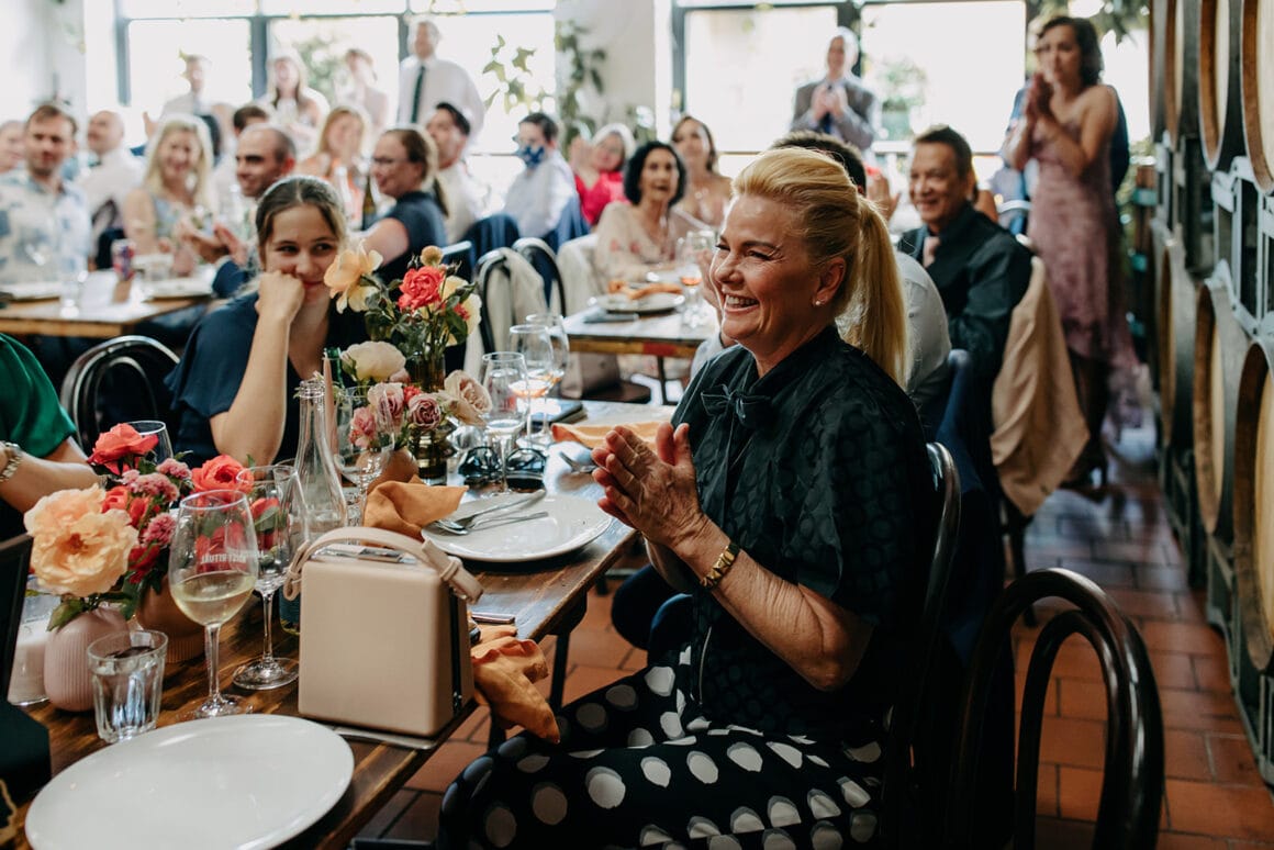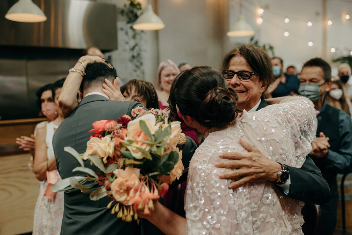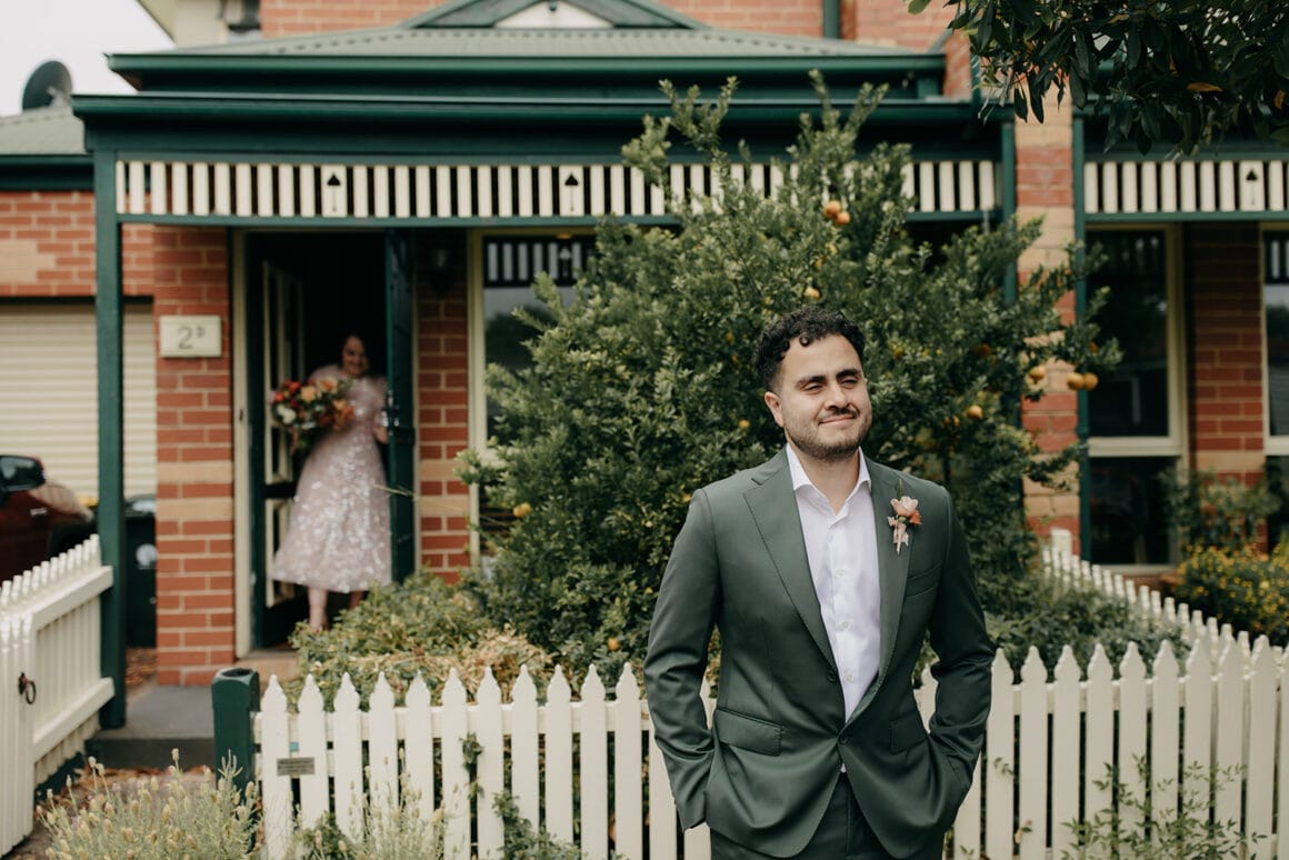 MOMENT MÉMORABLE « Mon moment préféré a été d'écouter notre cérémonie. Notre célébrant Nat Sproal a fait un travail incroyable en capturant qui nous sommes et en partageant parfaitement notre histoire. Être debout ensemble, écouter et rire avec tout le monde dans la pièce m'a aidée à me sentir moins nerveuse et plus excitée par ce qui allait se passer.