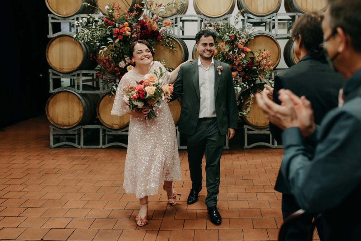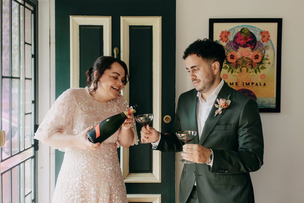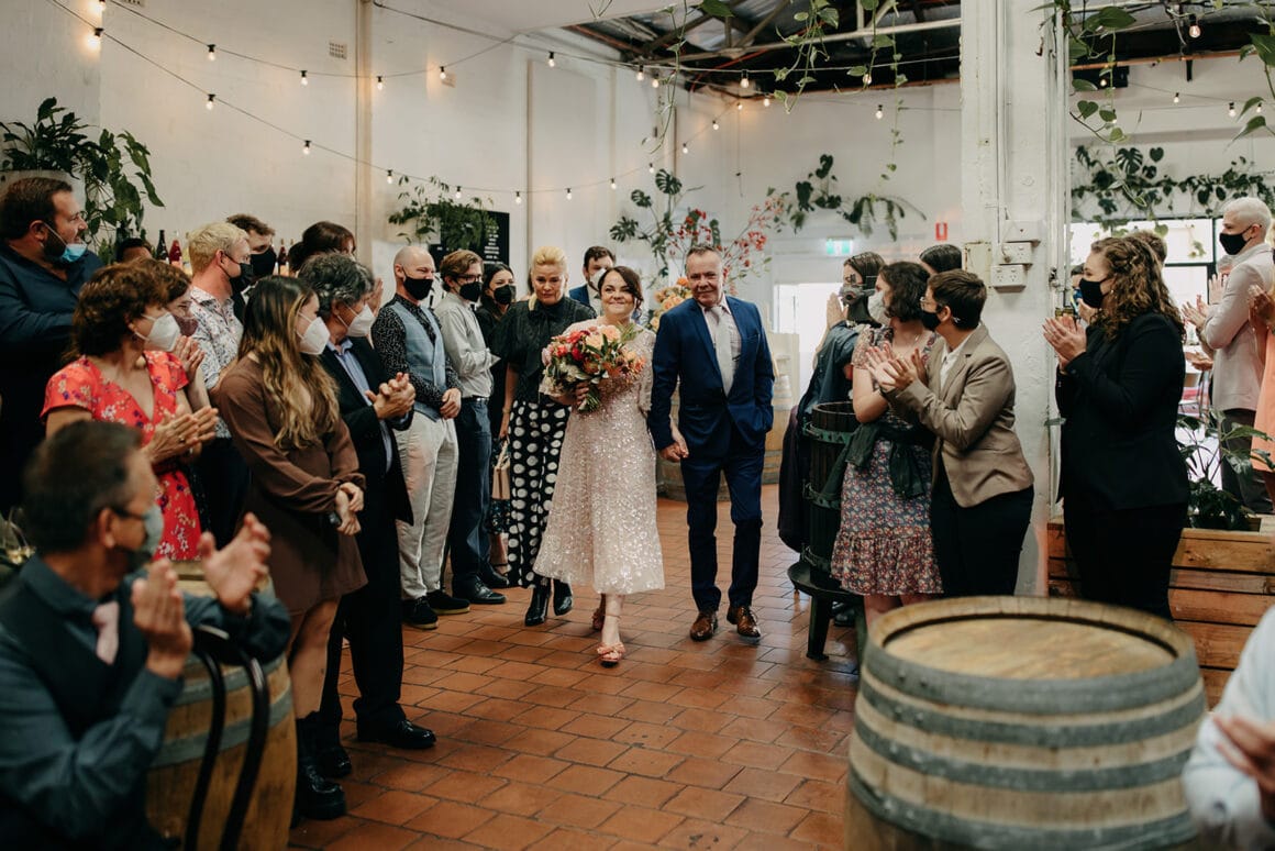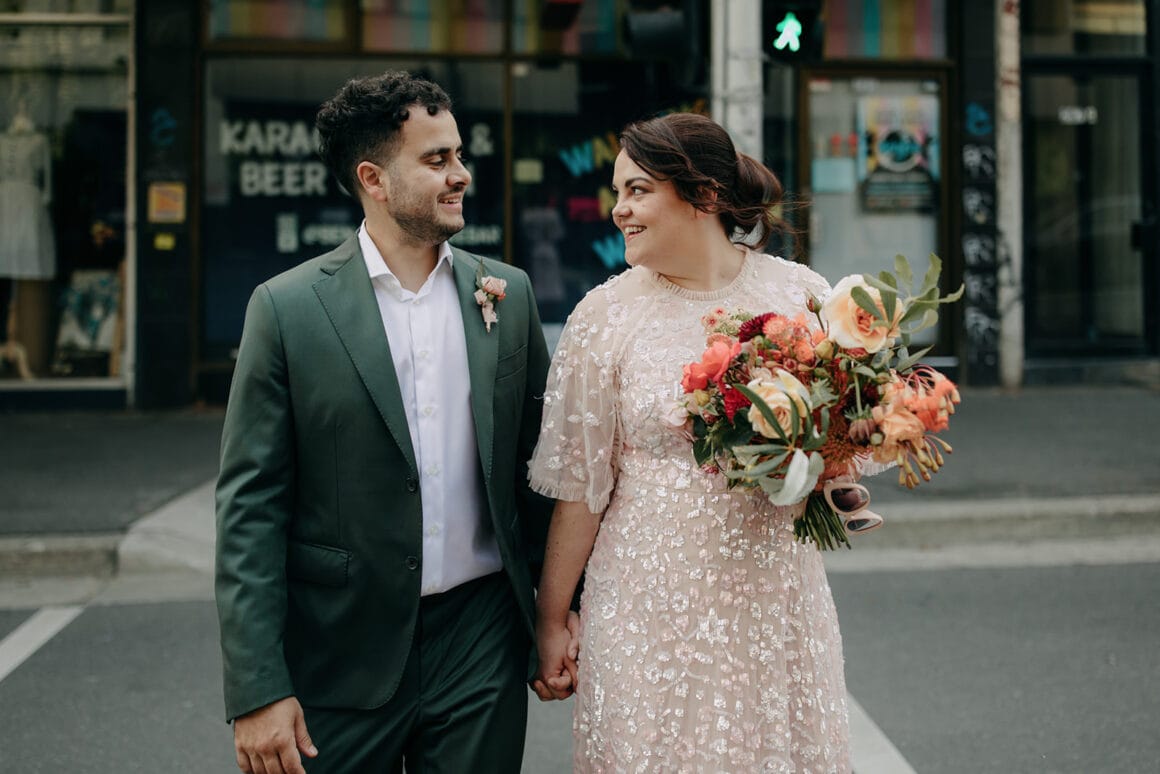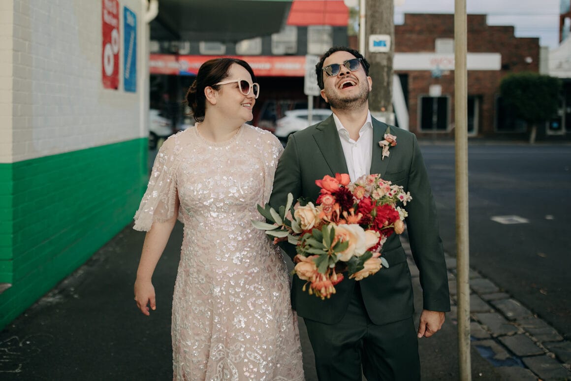Ces gars-là aiment s’amuser, les amis, et vous pouvez le voir à chaque instant de leur journée. De la robe de mariée rose de la mariée Maddy à leur cave urbaine, ce mariage à Melbourne a été une « grande fête fabuleuse », tout comme les mariés l'espéraient. « Nous avons décidé de choisir les traditions que nous aimions et d'ignorer celles qui ne nous ressemblaient pas. »