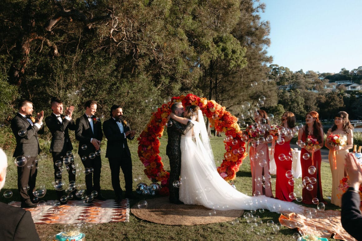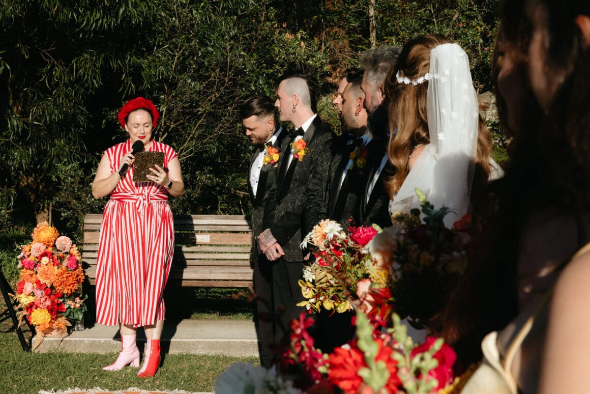 Les deux musiciens, Sam (guitariste à Fangz) et Courtney (membre du groupe de Go-Go The Beehives) savaient qu'ils voulaient que leur mariage en bord de mer de Sydney soit le reflet de leur style: «Un mélange de coloré des années 60 pour rock'n ' Roll », et a appelé leurs nombreux amis créatifs à y arriver. Ils ont également enrôlé la photographe incroyable Emily Hart d'un peu saisissante, qui a «capturé la couleur, l'amour et le rire tout au long de la journée.»