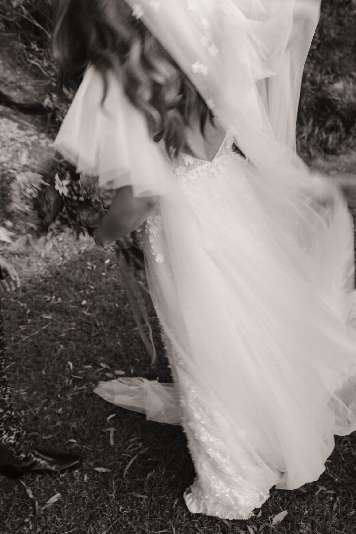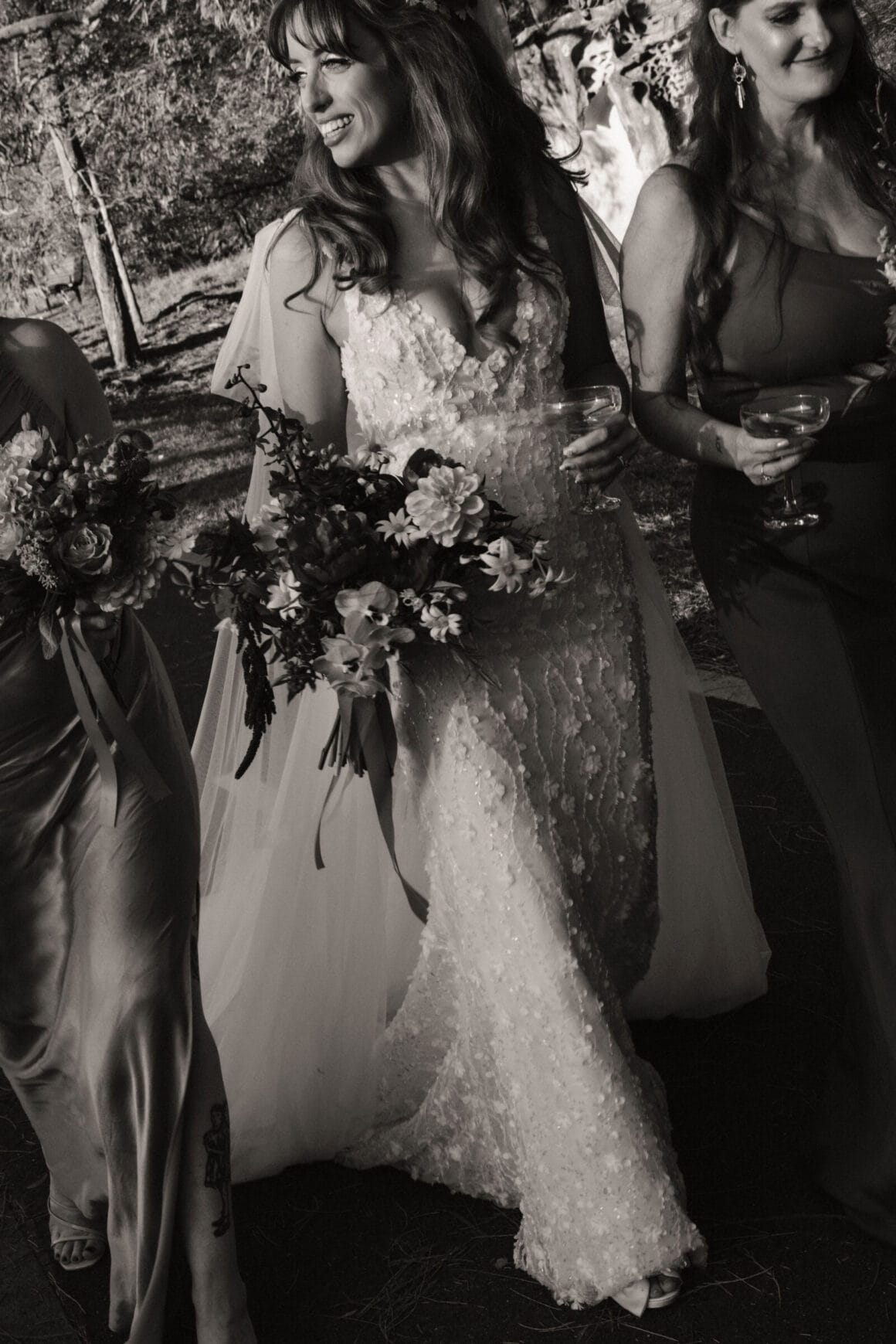La robe «Ma robe est Lenni de Made with Love Bridal. Comme ma famille est toutes interétatiques, ma sœur s'est organisée pour elle et ma mère pour se rendre à Sydney pour un grand jour de shopping vestimentaire – nous avons visité six magasins en une journée! Ma demoiselle d'honneur Nikki nous a également rejoints, et je l'ai traînée dans tous les magasins de la ville pendant de nombreux week-ends en tant que dénominateur commun lors de la comparaison des styles. Sa robe de mariée était également de Made with Love, donc c'était vraiment spécial de l'avoir avec moi et d'être des filles MWL ensemble. »