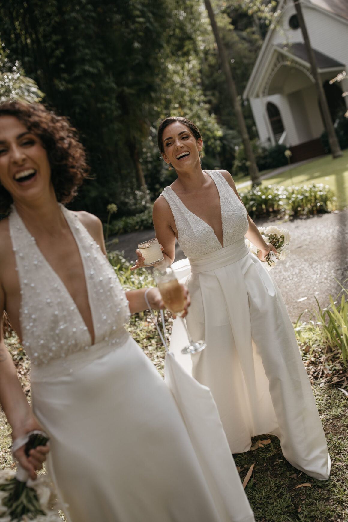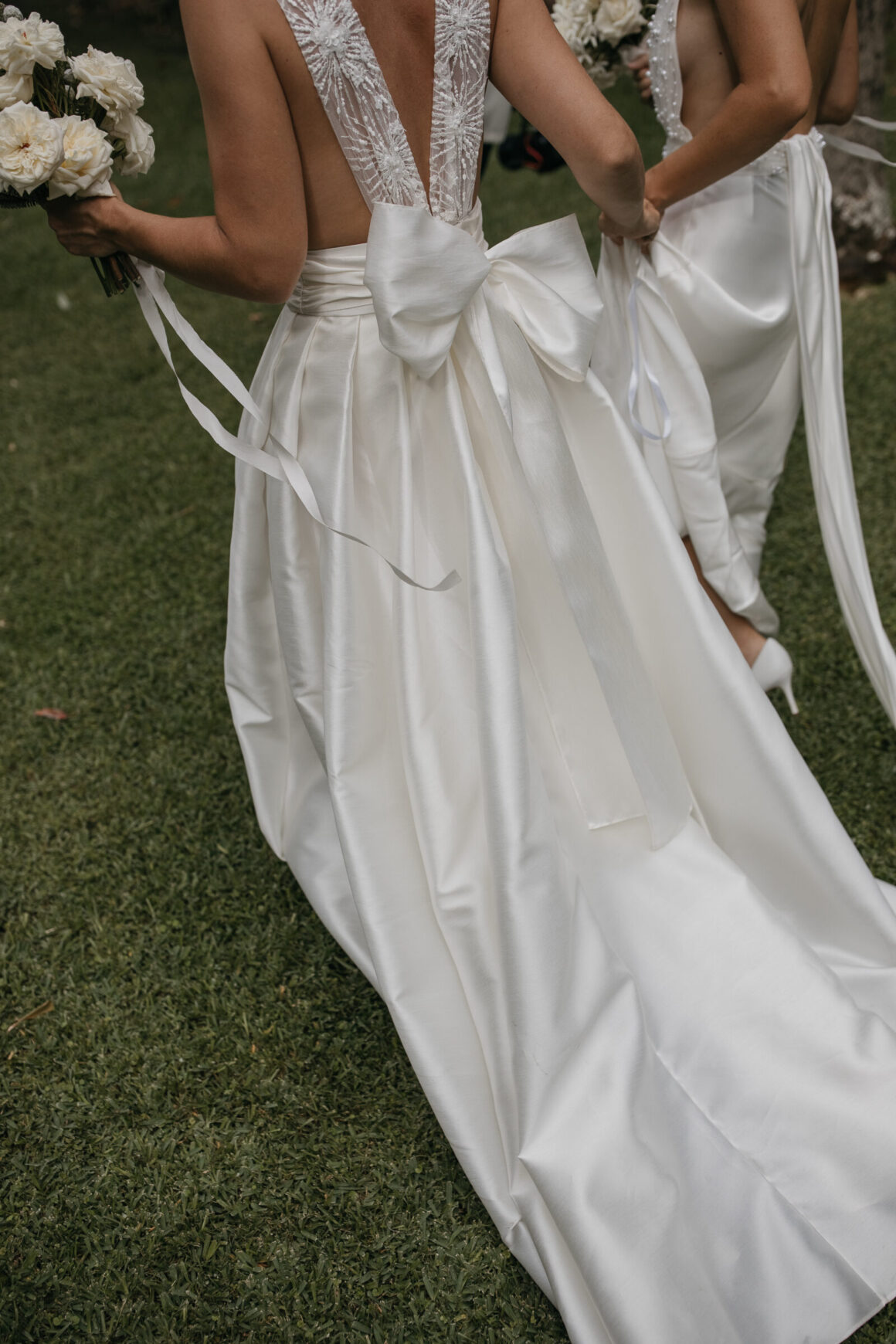 « Le processus était si simple – Mannie de Bowie Rae nous a mis à l'aise pour explorer différents styles. La meilleure chose que Mannie nous a dite était : « Comment voulez-vous vous sentir ce jour-là ? » plutôt que « À quoi voulez-vous ressembler ? » A partir de ce moment, tout s’est mis en place et la magie a opéré. Nous n'aurions pas pu être plus satisfaites de nos robes ou de la façon dont nous nous sentions en les portant.