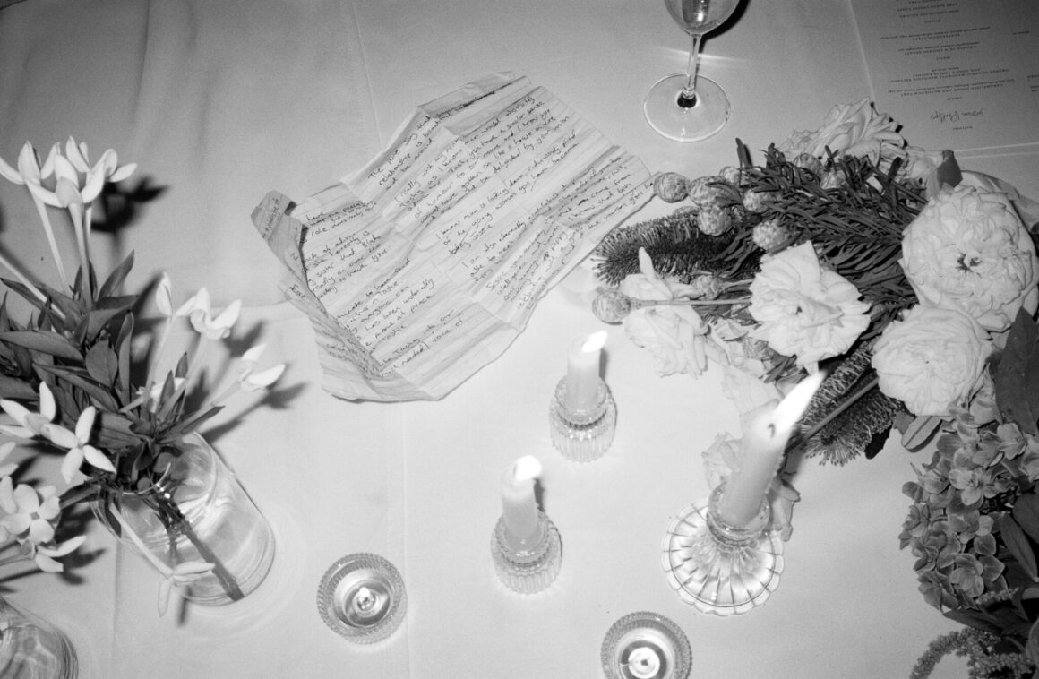 « Au milieu de la réception, avec quelques verres à la portée de tous, notre fabuleux MC est venu discuter – plein de flair, il a fait un tourbillon spectaculaire à 360 degrés… et a immédiatement mis le feu à sa veste sur l'une des bougies ! Heureusement, il allait bien, juste légèrement roussi et très scintillant pour le reste de la nuit ! »