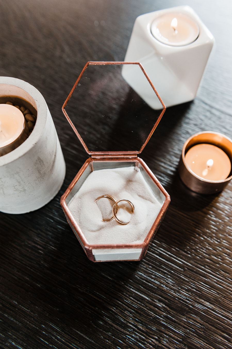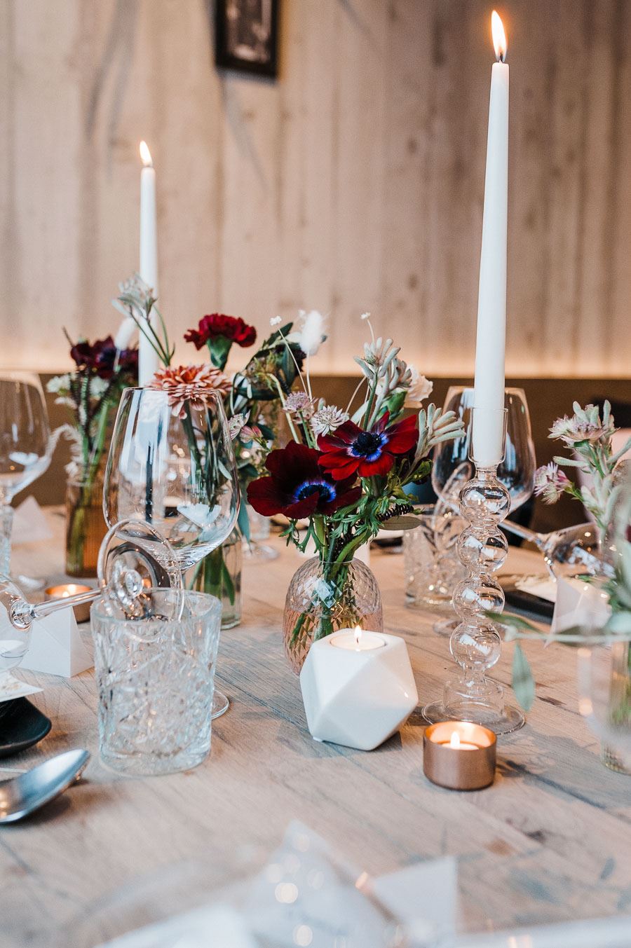 Quand j’ai vu les photos, ma mâchoire est tombée spontanément et je suis tombée amoureuse. J’aime la façon dont tout est fait d’une seule pièce et les formes géométriques constituent un fil conducteur clair à travers ce mariage d’hiver. Associé à la subtile décoration florale, cela crée un tableau totalement harmonieux et montre qu’il n’est pas toujours nécessaire d’être pompeux et opulent. Ceci a été développé Concept par Denise Stockqui a également photographié le mariage.