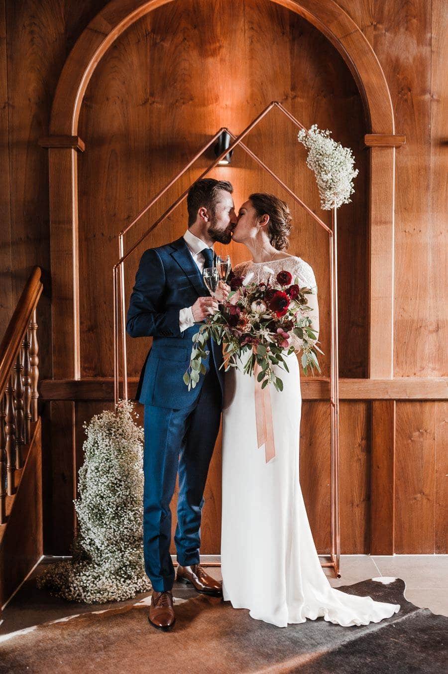Mariage d’hiver élégant en cuivre, noir et blanc