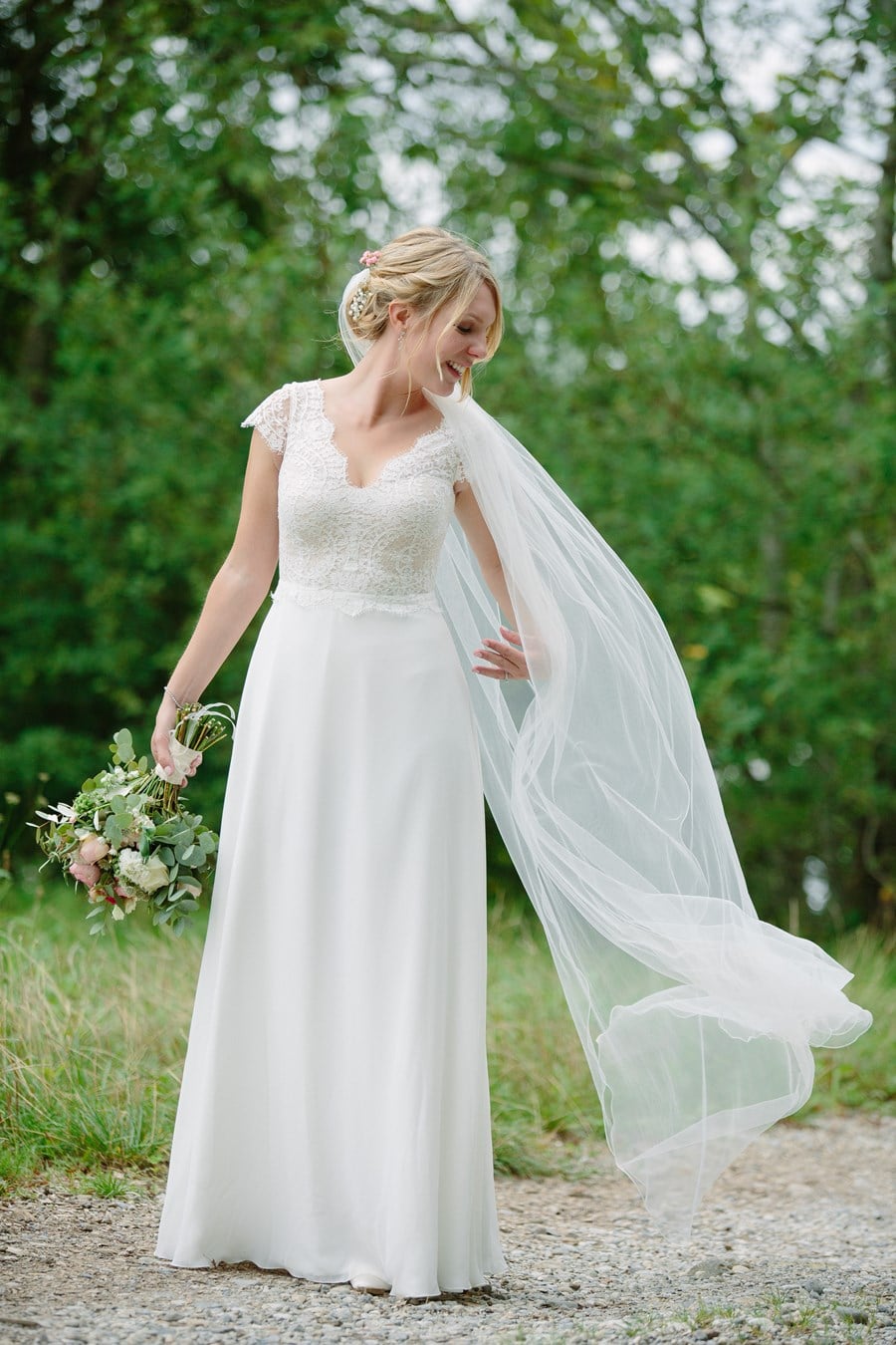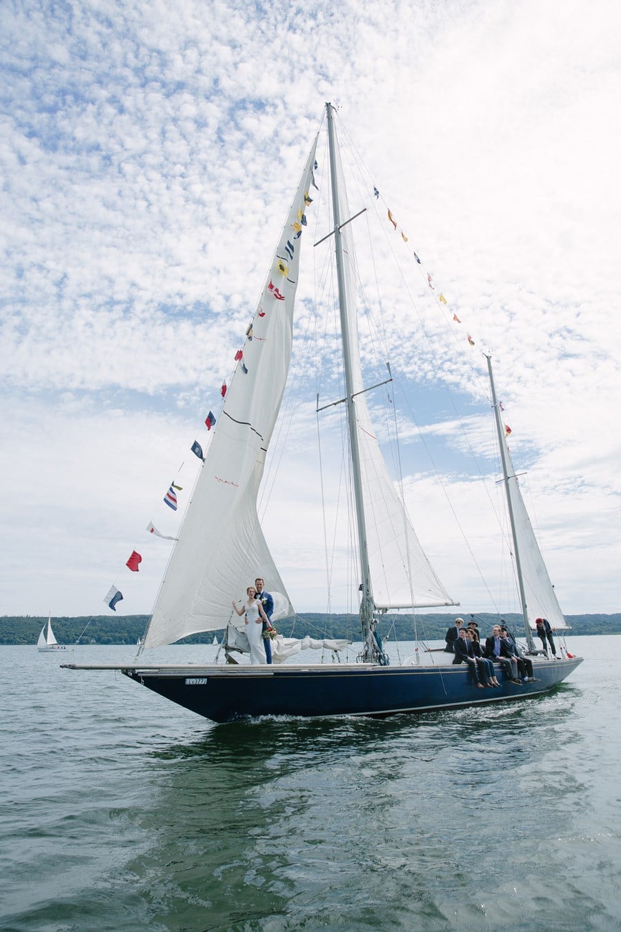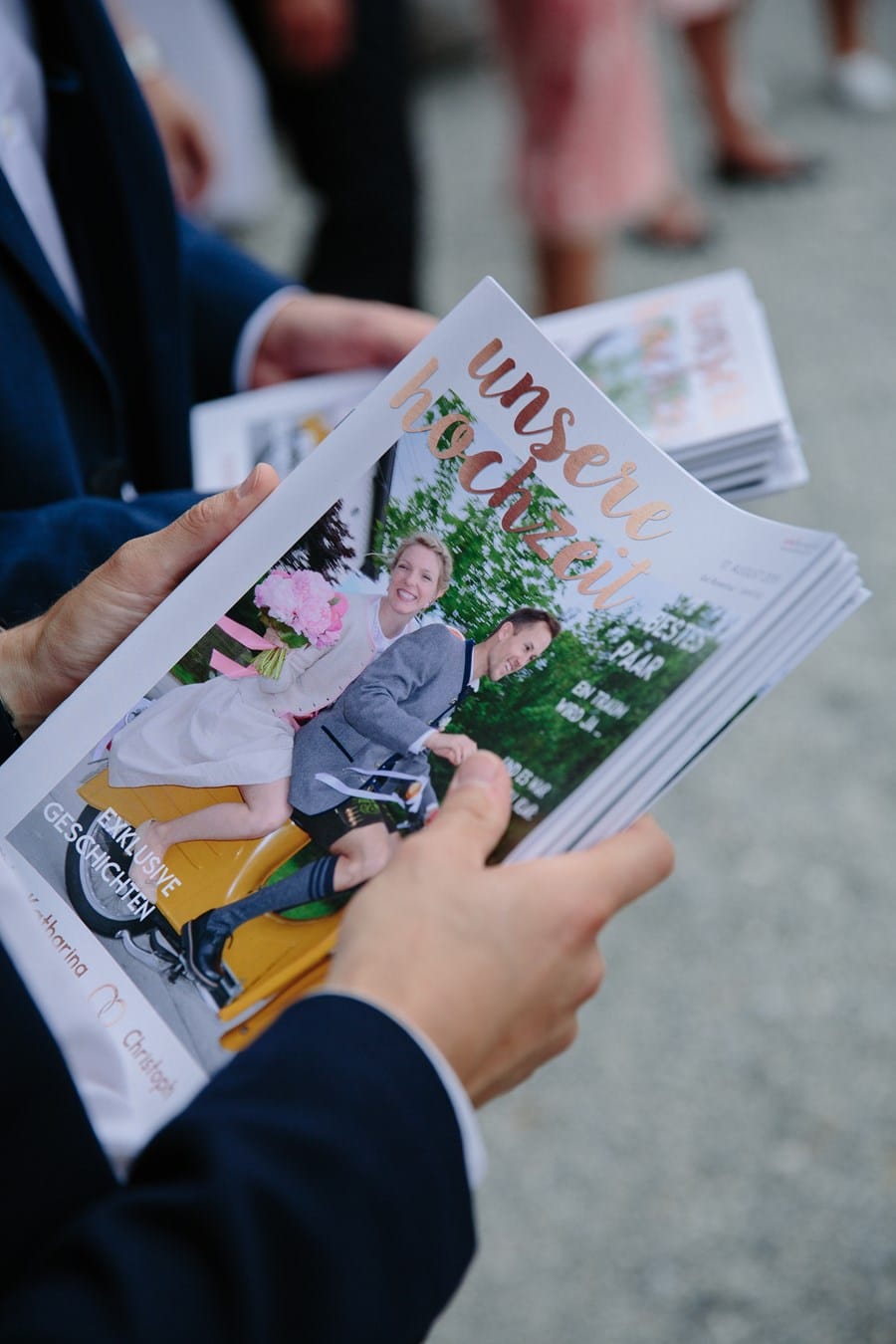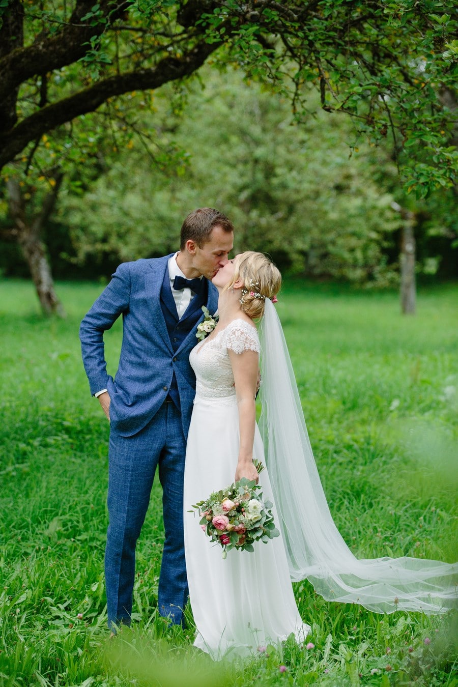 Comme je l’ai dit, les deux se sont mariés au bord du lac Ammersee, « parce que Christoph fait partie du club de voile ici et que nous avions avec Gut Romenthal un lieu de mariage magnifique avec sa propre petite chapelle, qui reflétait exactement la décontraction que nous recherchions pour la journée. Nous avions un prêtre catholique très sympathique qui nous a donné beaucoup de liberté pour le mariage, au cours duquel nous nous sommes dit nos paroles personnelles, qui étaient très émouvantes.