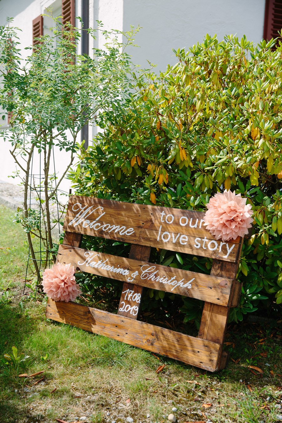 Katharina dit à propos de la planification du bricolage : « Nous avons fait beaucoup de choses nous-mêmes et voulions que autant de détails que possible soient faits maison (panneaux indicateurs, palettes, cadeaux de fête, photomaton, etc.) et l’effort en valait la peine ! Chaque invité a remarqué les nombreux détails et la fête était encore plus personnelle. Mais ne vous stressez pas trop, tout ira bien !