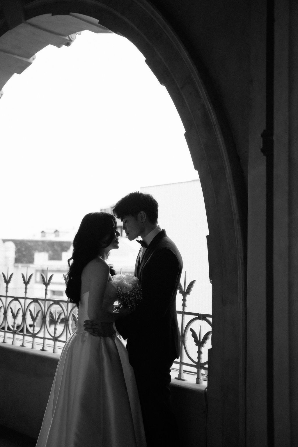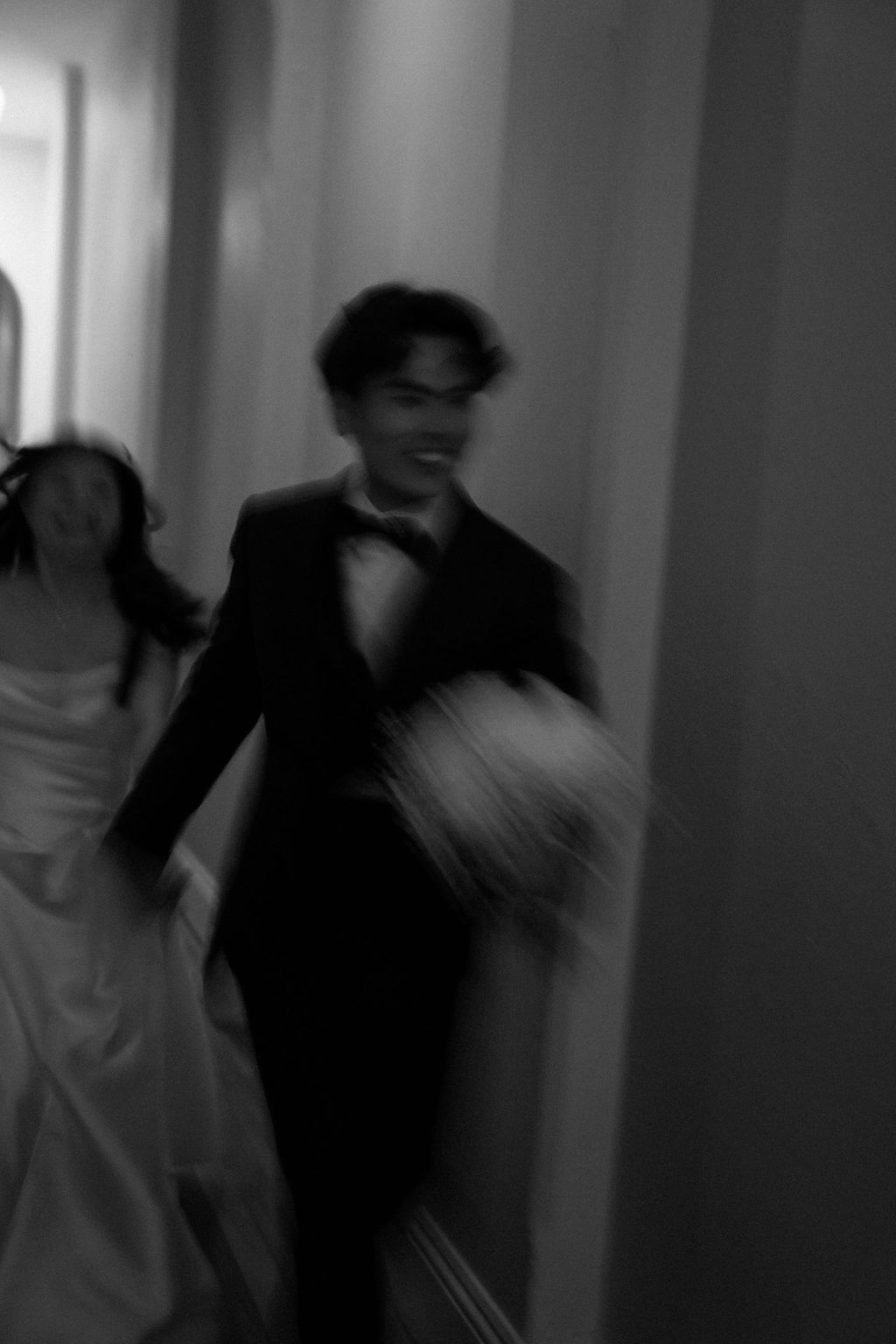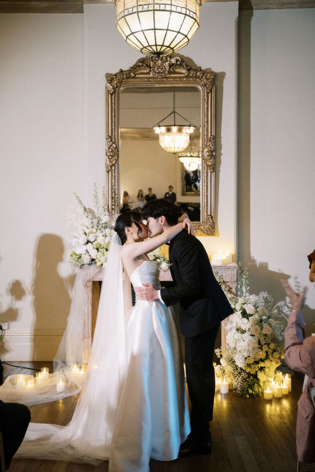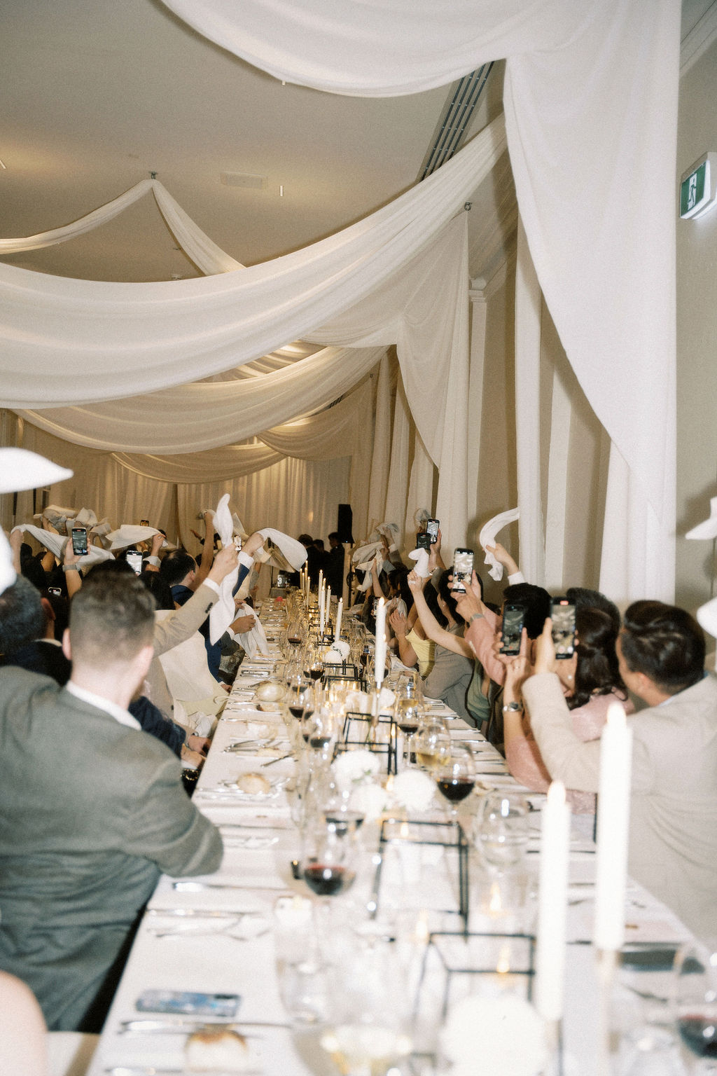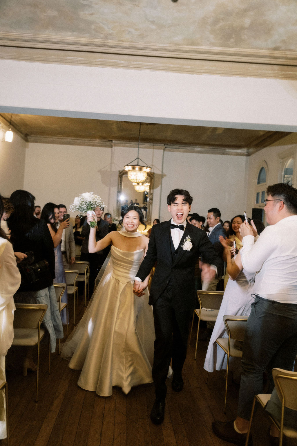 Lorsqu’il s’agissait d’organiser leur journée de rêve, ce couple créatif, qui travaille tous deux dans le domaine de l’architecture, était dès le départ sur la même longueur d’onde. «Élégant, intemporel et chic», tel était le brief, un lieu de mariage intérieur avec «un fort caractère architectural et de beaux détails». Ainsi, lorsqu’ils ont visité l’endroit qui allait devenir leur espace – Sophia au Prahran Arcade – ce fut, naturellement, un « coup de foudre ».