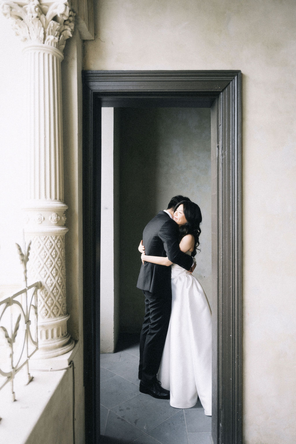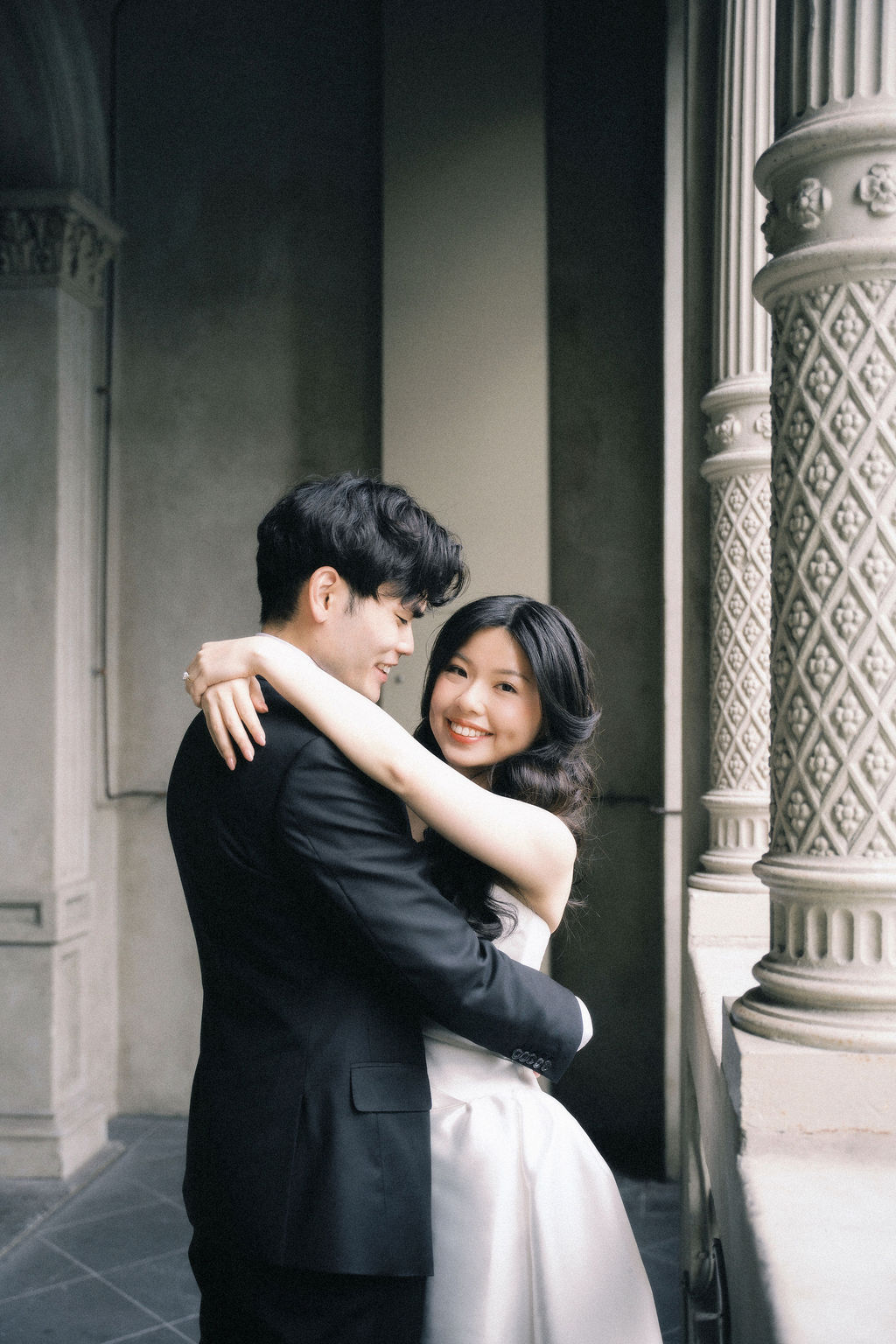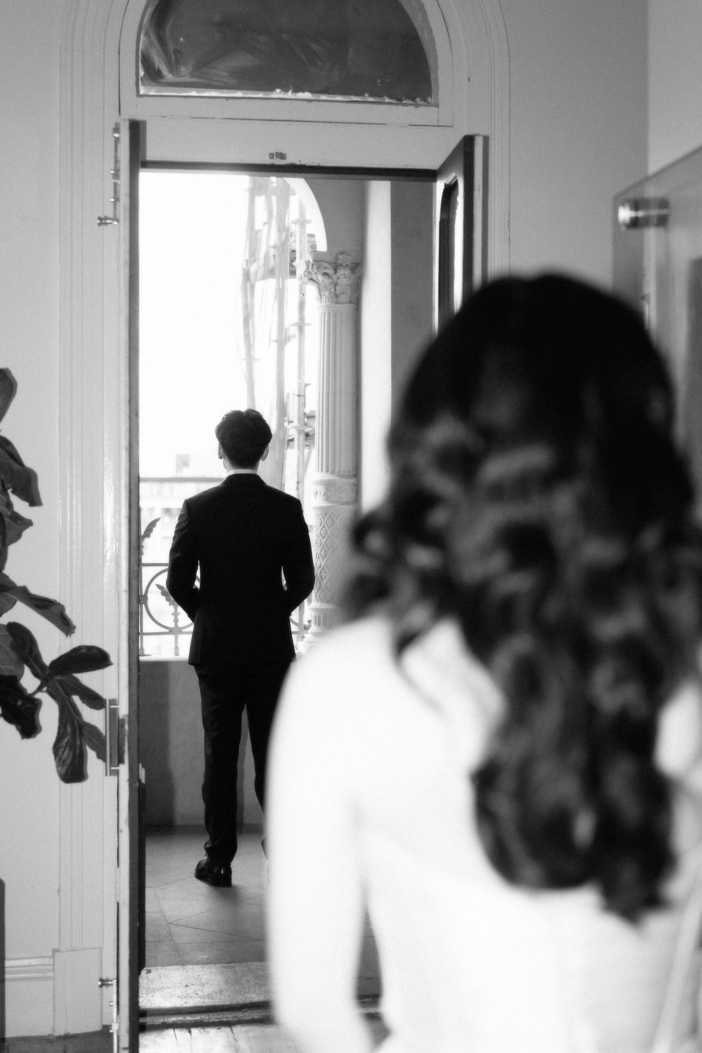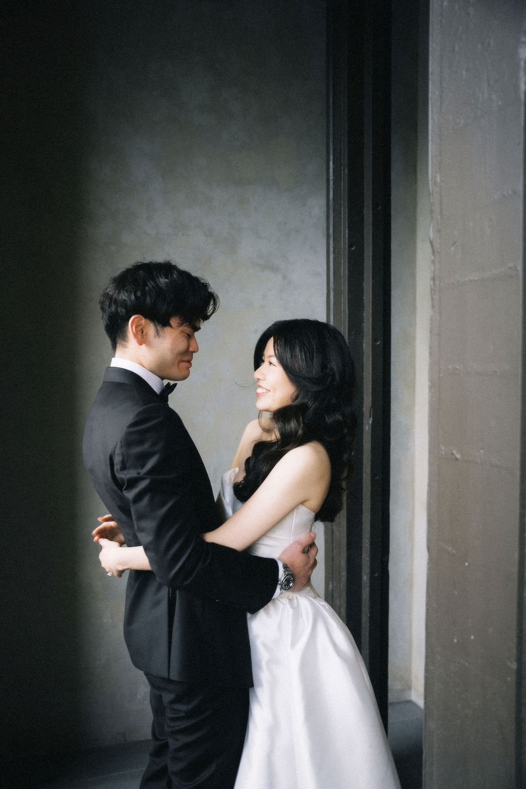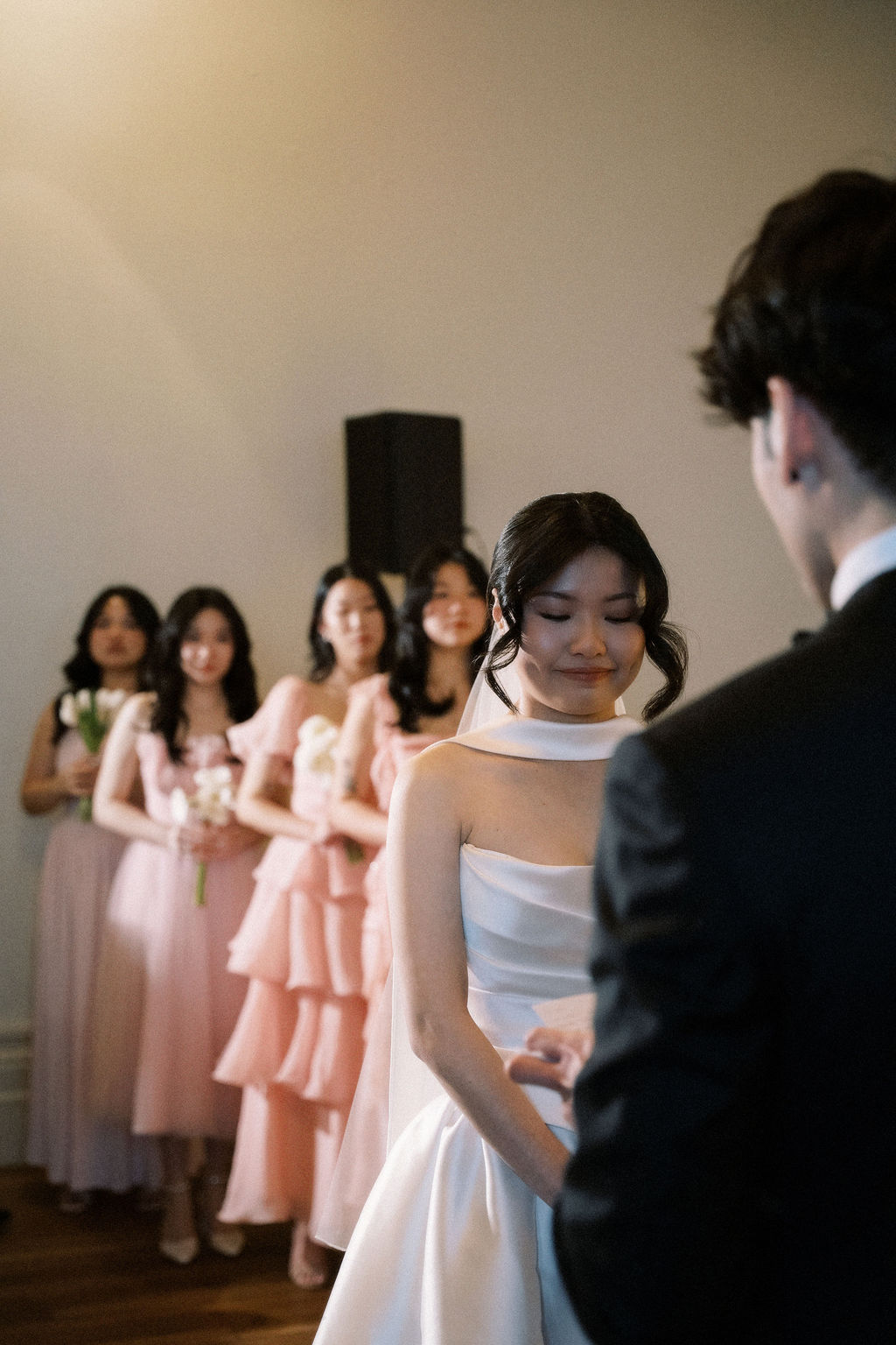 Lorsqu’il s’agissait d’organiser leur journée de rêve, ce couple créatif, qui travaille tous deux dans le domaine de l’architecture, était dès le départ sur la même longueur d’onde. «Élégant, intemporel et chic», tel était le brief, un lieu de mariage intérieur avec «un fort caractère architectural et de beaux détails». Ainsi, lorsqu’ils ont visité l’endroit qui allait devenir leur espace – Sophia au Prahran Arcade – ce fut, naturellement, un « coup de foudre ».