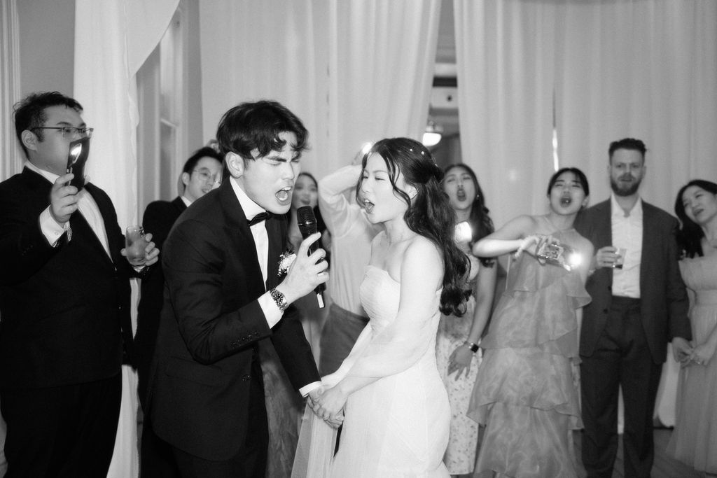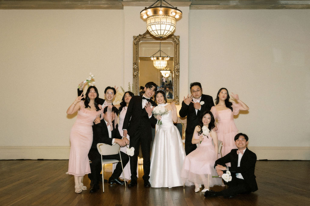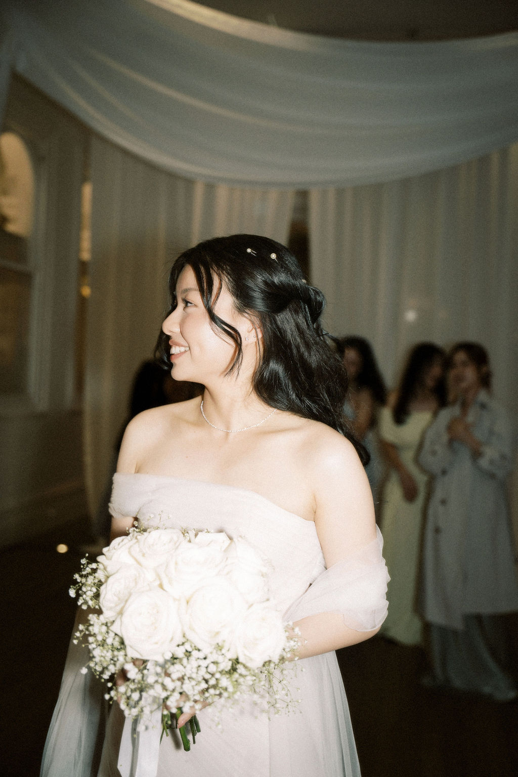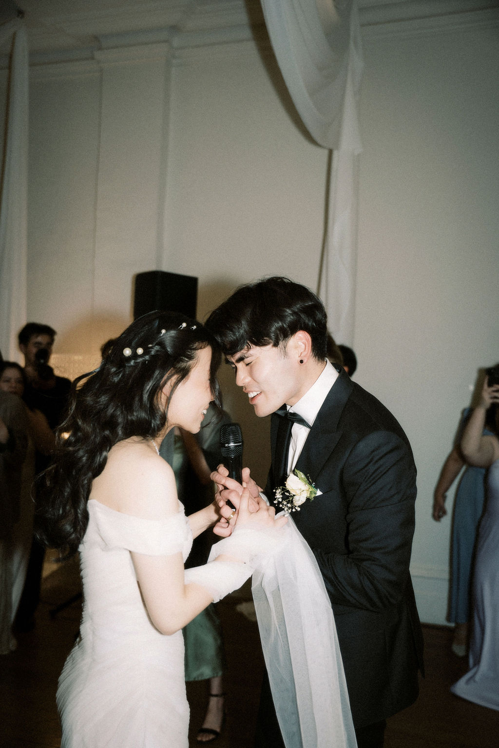 « Nous avons été immédiatement attirés par Sophia à Prahran Arcade pour la façade patrimoniale et ses détails complexes. Les fenêtres cintrées, les ornements de façade et les grandes colonnes dégagent un look intemporel et classique. Notre cérémonie a eu lieu dans la salle de bal, un espace élégant avec une cheminée, des lustres ornés et un balcon à couper le souffle donnant sur Chapel Street. L'une de nos caractéristiques préférées était le bar qui se trouve entre les espaces de cérémonie et de réception, qui a créé un point de transition naturel et un espace parfait pour que nos invités puissent déguster des canapés avant le début de la réception. Le bar, propre et propre, L'agencement élégant de The Gallery (notre espace de réception) était exactement ce que nous recherchions. La pièce de 60 mètres de long offrait un sentiment d'intimité, tandis que le haut plafond nous donnait l'occasion de donner enfin vie à l'installation de drapage de nos rêves.