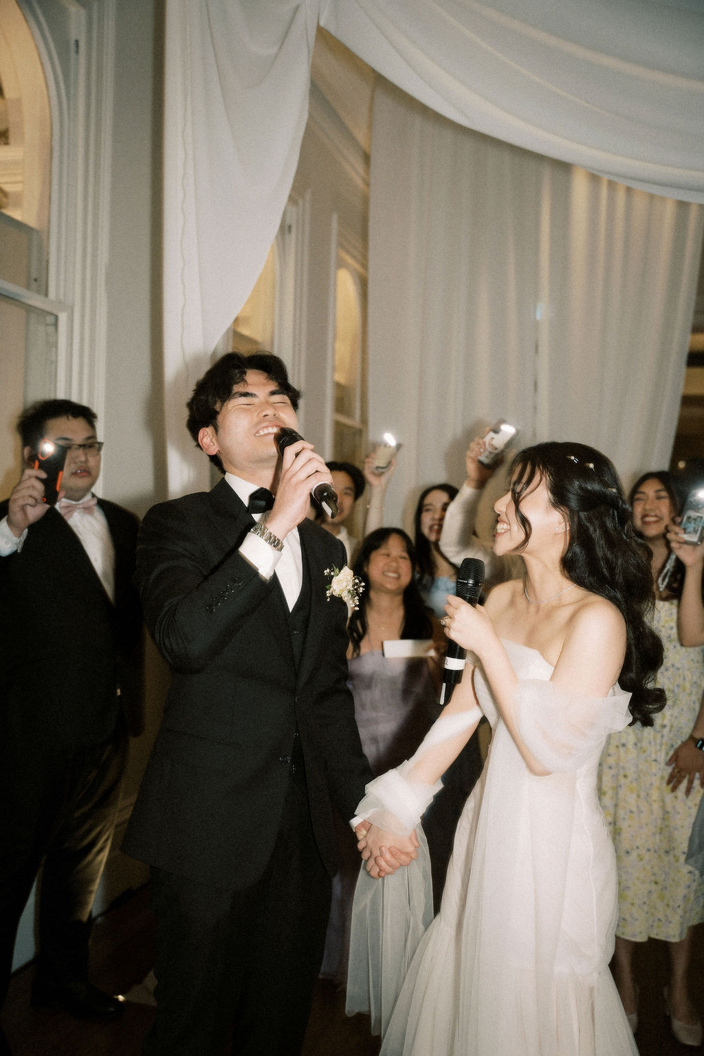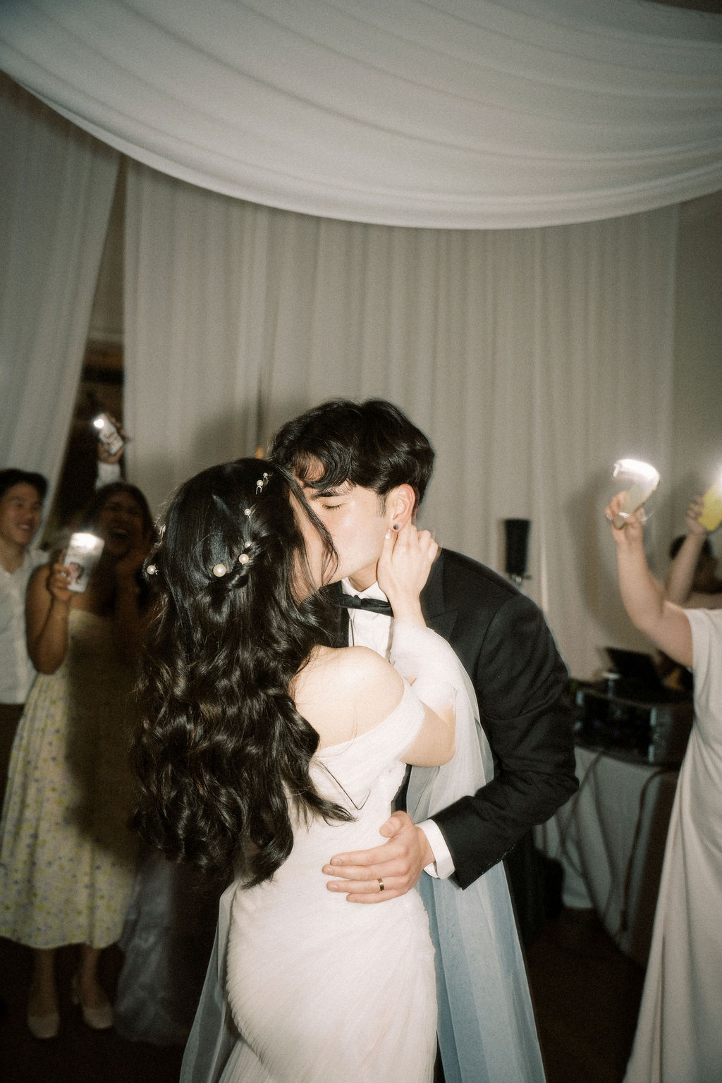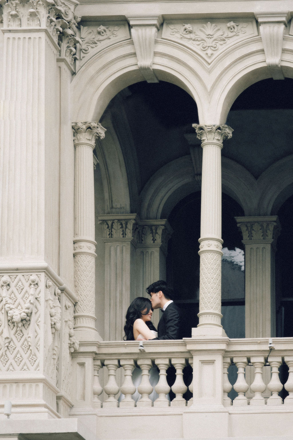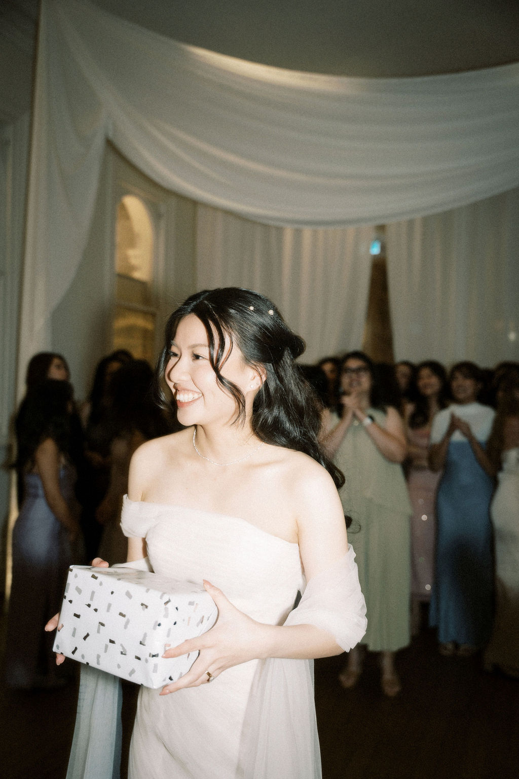 « Nous avons été immédiatement attirés par Sophia à Prahran Arcade pour la façade patrimoniale et ses détails complexes. Les fenêtres cintrées, les ornements de façade et les grandes colonnes dégagent un look intemporel et classique. Notre cérémonie a eu lieu dans la salle de bal, un espace élégant avec une cheminée, des lustres ornés et un balcon à couper le souffle donnant sur Chapel Street. L'une de nos caractéristiques préférées était le bar qui se trouve entre les espaces de cérémonie et de réception, qui a créé un point de transition naturel et un espace parfait pour que nos invités puissent déguster des canapés avant le début de la réception. Le bar, propre et propre, L'agencement élégant de The Gallery (notre espace de réception) était exactement ce que nous recherchions. La pièce de 60 mètres de long offrait un sentiment d'intimité, tandis que le haut plafond nous donnait l'occasion de donner enfin vie à l'installation de drapage de nos rêves.