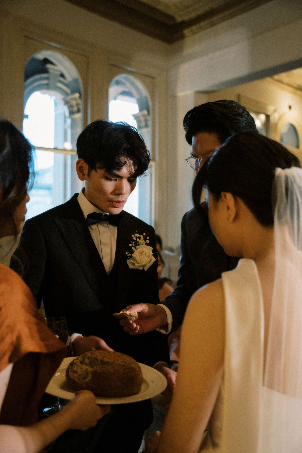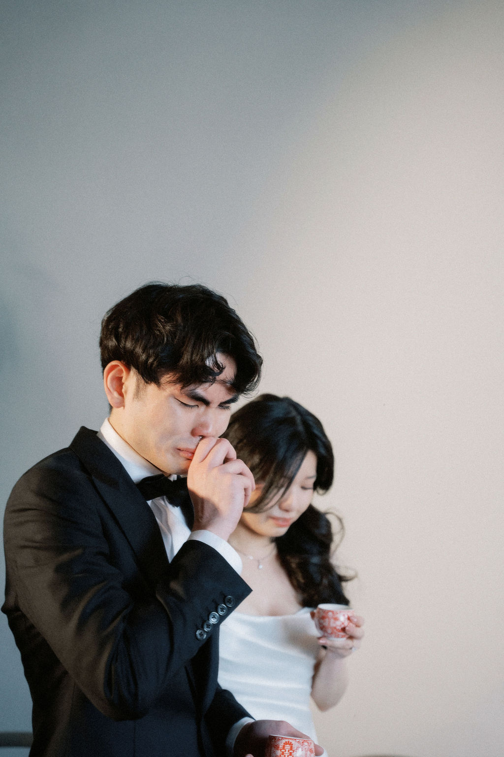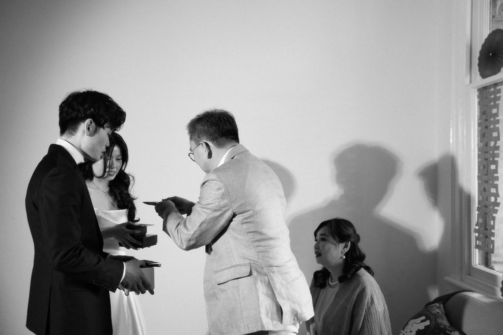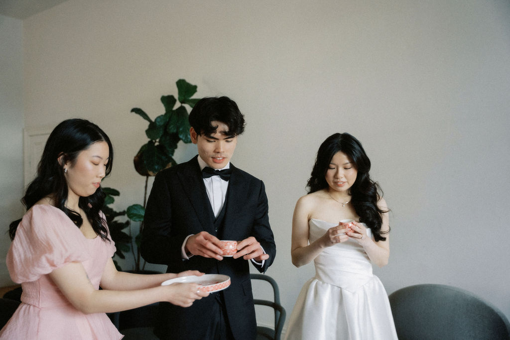 « Notre cérémonie du thé a été sans conteste l'un de nos moments préférés de toute la journée. C'était un moment tellement intime et émouvant, tous les deux avec nos parents. Dès le premier instant, les larmes ont commencé à couler. Servir le thé à nos parents et les remercier pour tout ce qu'ils ont fait pour nous était incroyablement émouvant. Cela nous a donné l'espace pour faire une pause, réfléchir et exprimer notre gratitude pour les années d'amour, de sacrifice et de soutien qui nous ont amenés à ce jour. »