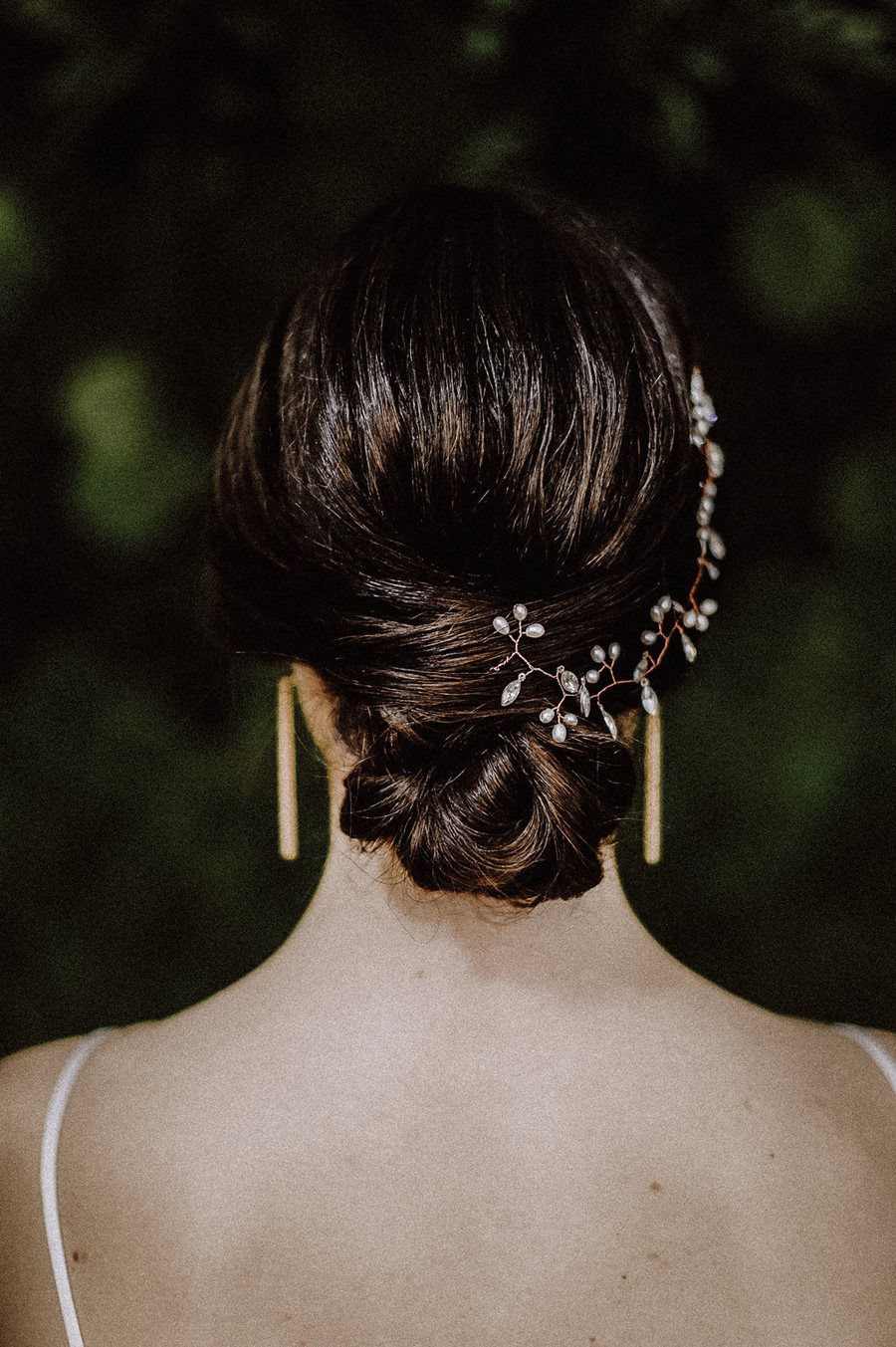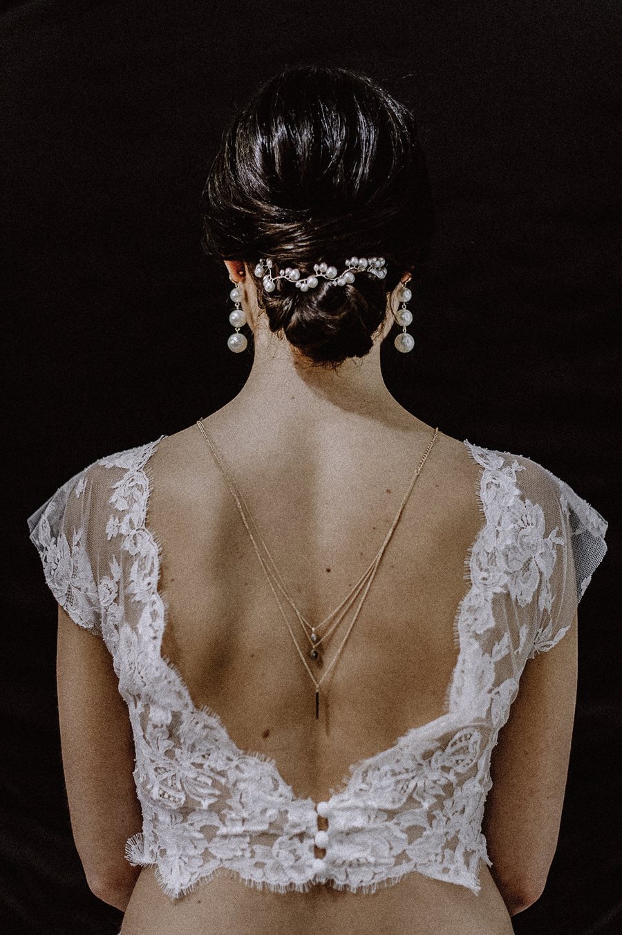 «Mon idée était de transformer ce qui était censé être un look simple en un look glamour et cool», explique Kirstin. L’astuce : un maquillage simple comme base, avec des yeux soulignés de façon spectaculaire et un éclat subtil sur les joues. Les coiffures classiques telles que le chignon glamour bas ou le chignon spectaculaire en haut de l’arrière de la tête permettent à la vue de tomber sans entrave sur les épaules de la mariée.