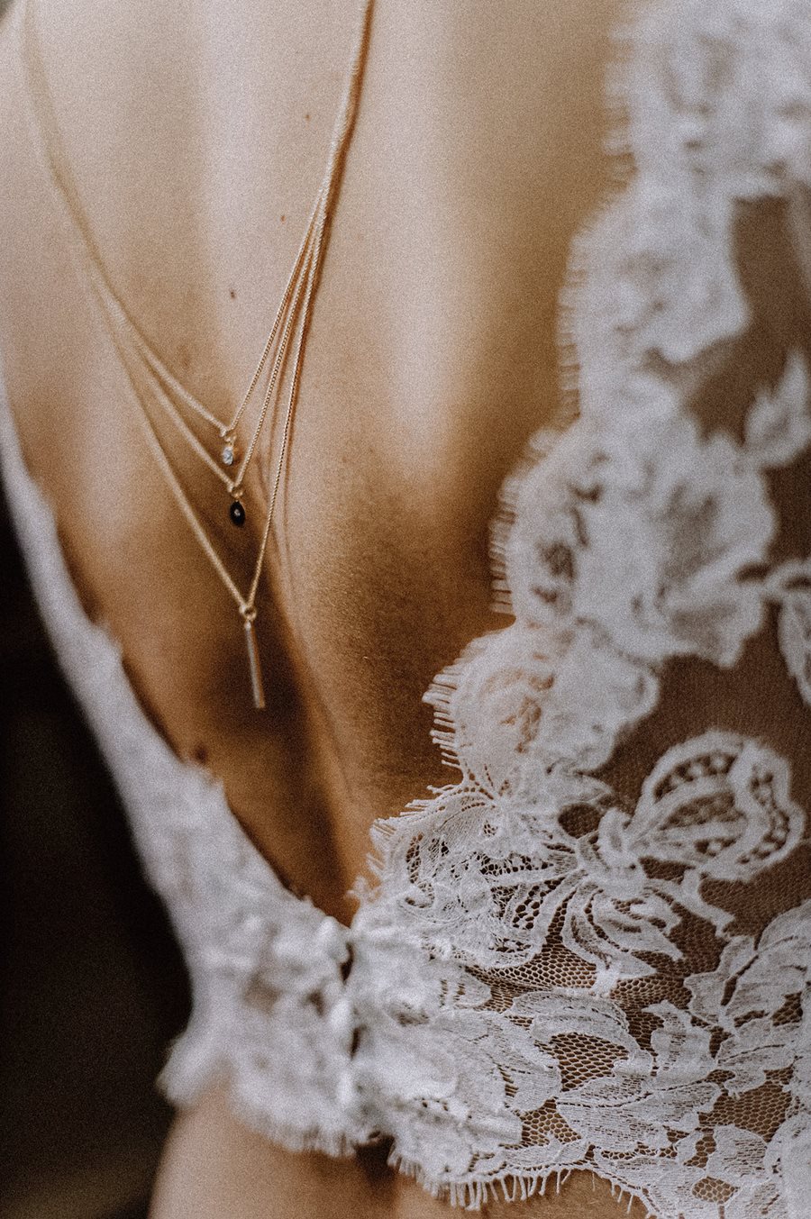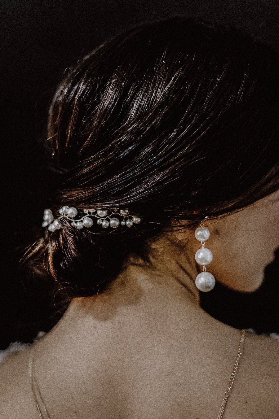 Bien sûr, une robe de mariée sans épaules est particulièrement belle – ou du moins une robe qui laisse la plupart des épaules libres. Si vous combinez ensuite des accessoires pour cheveux élégants avec des perles, de l’or et des tons roses doux et que vous portez des boucles d’oreilles classiques ou un collier délicat, le style glamour de la mariée prend tout son sens.