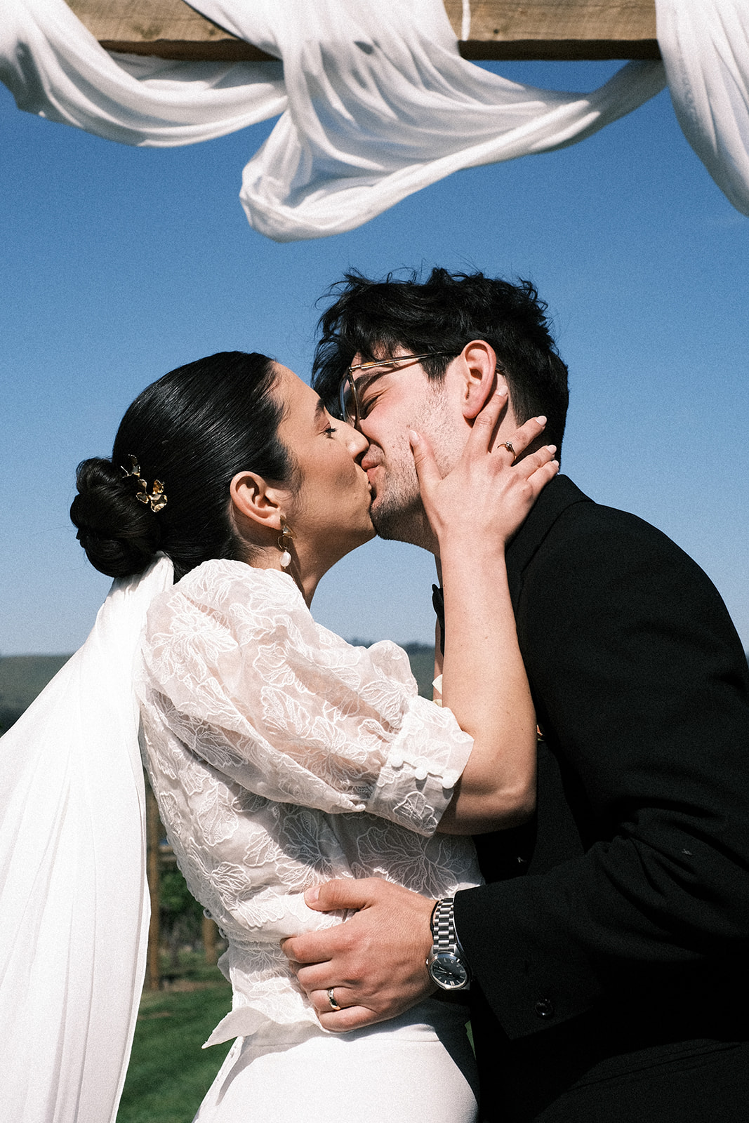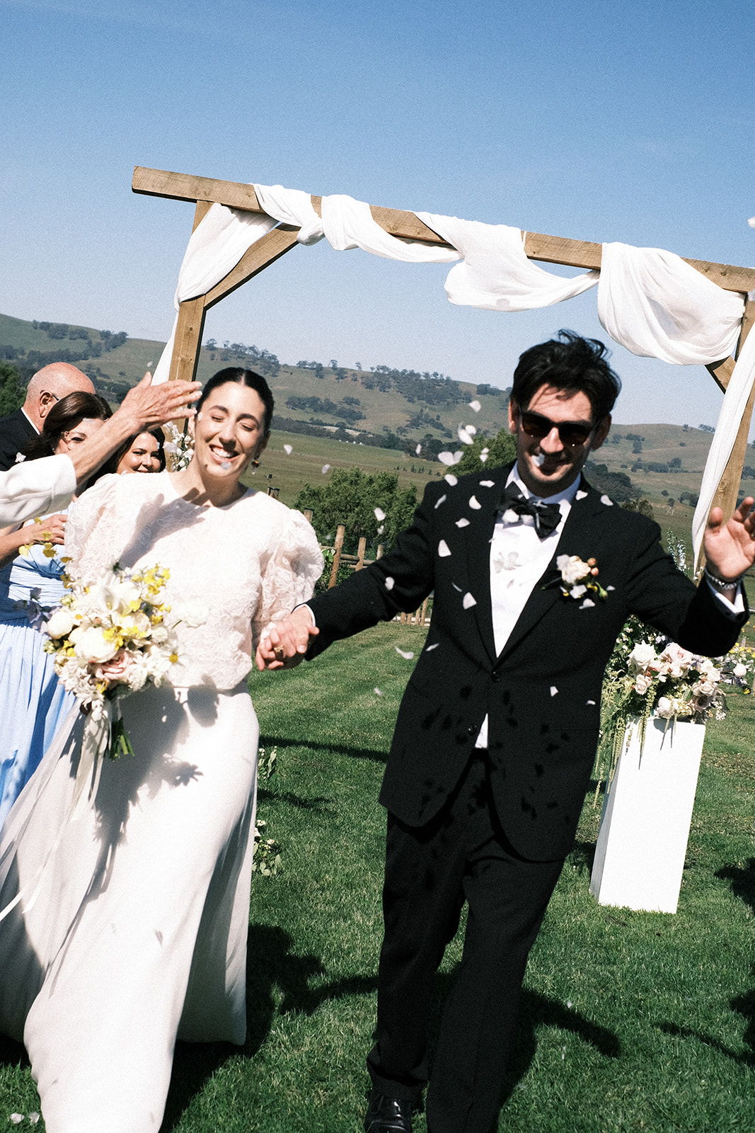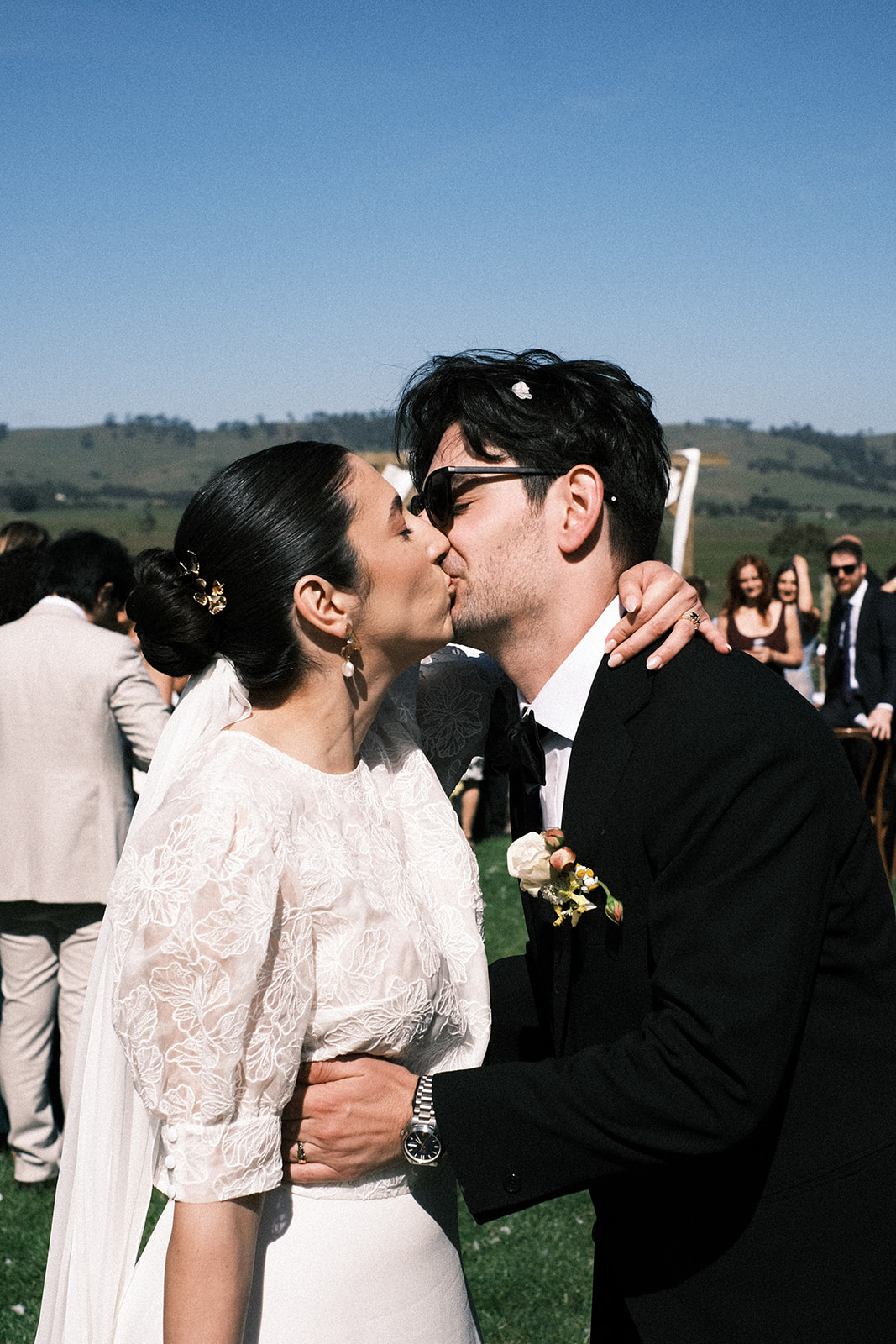 « Tout au long de la journée, les invités se demandaient constamment qui étaient notre vidéaste (Ben McFadyen – These Wild Eyes) et notre photographe (Tom Hvala – Thomasjpg) et où nous les avions trouvés. Tout le monde était tellement intrigué par l'appareil photo 16 mm de Ben et la configuration de l'appareil photo argentique de Tom. Une fois les photos et la vidéo sorties, tout le monde a été époustouflé par l'ambiance élégante et vintage. Ils ont tous deux parfaitement capturé le bonheur de la journée, et c'est certainement ce dont nos invités raffolent encore. De plus, Logan (The Knave), le DJ, a spontanément décidé d'interpréter une reprise d'une chanson d'Elvis, Douce Caroline pour la foule, ce qui a absolument époustouflé tout le monde. Aucun de nous ne s’y attendait et des invités sont venus nous voir toute la nuit pour nous demander si c’était prévu. Nous avons dû leur dire que nous étions aussi surpris qu’eux ! C'était vraiment tellement amusant.