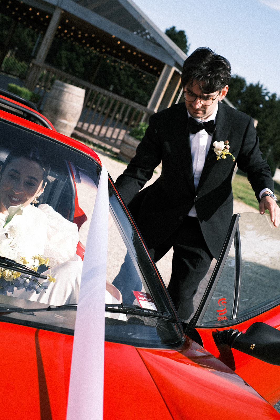 « Avoir à la fois la Ford du père de Renée et la Ferrari de son oncle a vraiment été un ajout incroyable à une journée déjà magnifique. Renée et moi avons été conduites à la cérémonie dans les voitures, moi-même dans la Ferrari et Renée dans la voiture de son père. [He] a conduit tous ses enfants le jour de leur mariage dans sa voiture.